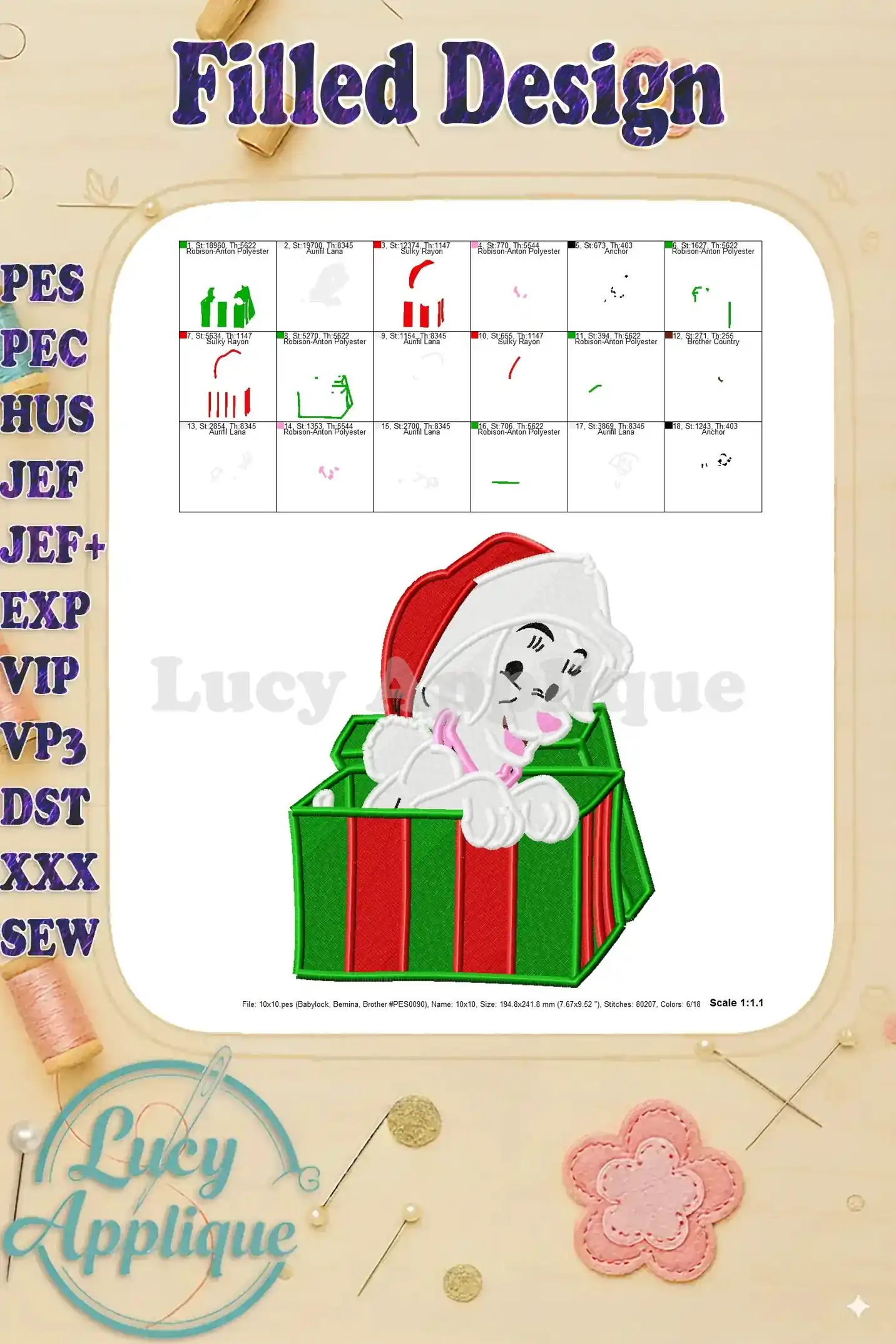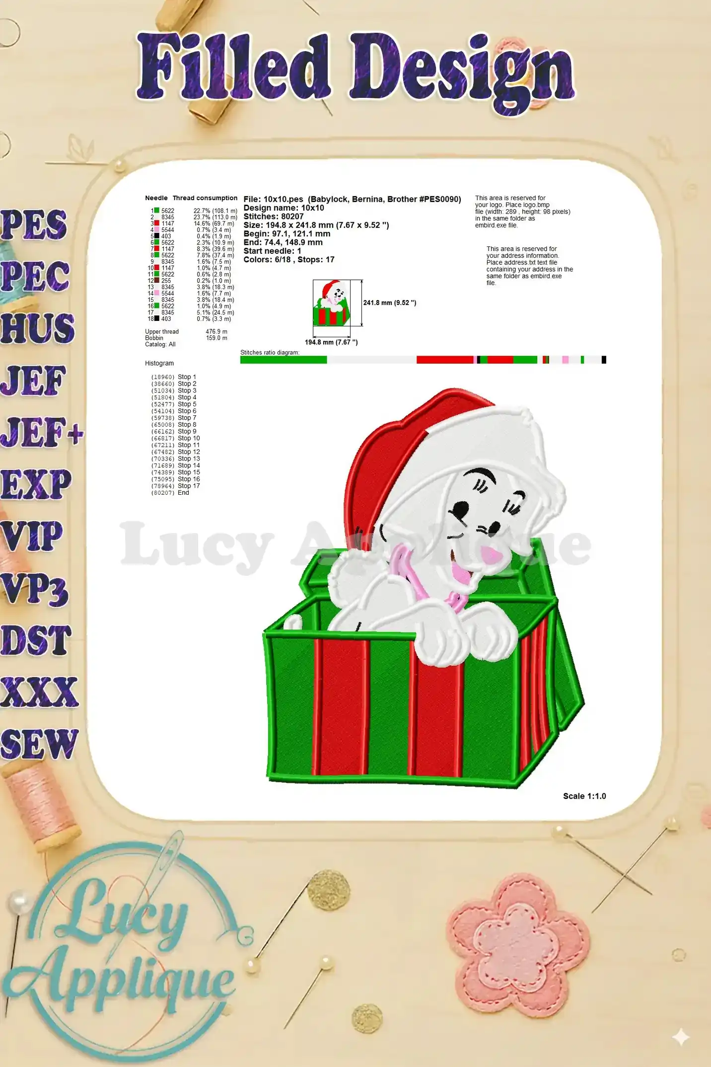 101 Dalmatians Christmas Fill Embroidery Design 01 – Instant Download