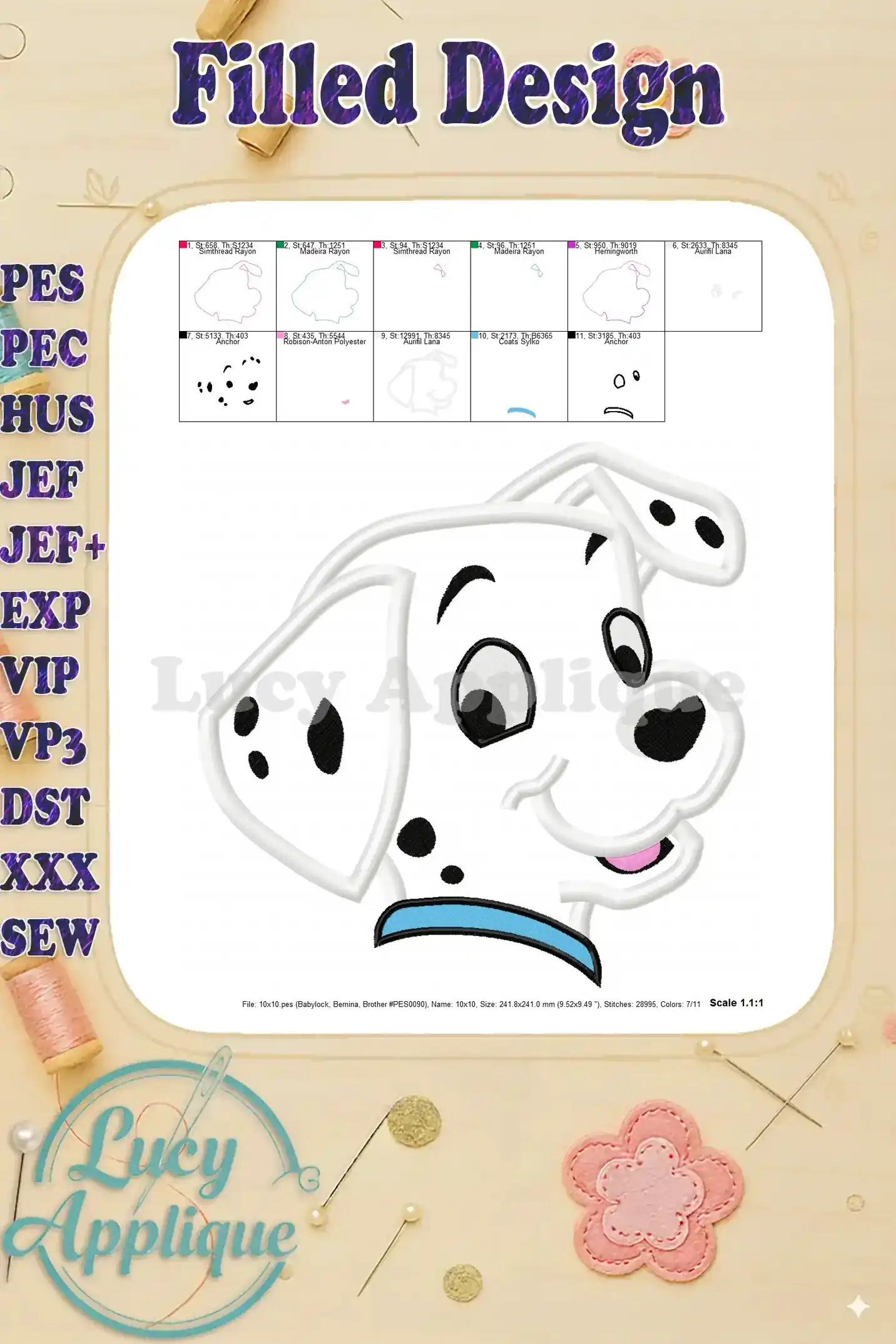 Adorable 101 Dalmatians puppy applique embroidery design! Perfect for adding a touch of Disney magic to your projects. Easy-to-follow instructions included. Download now!