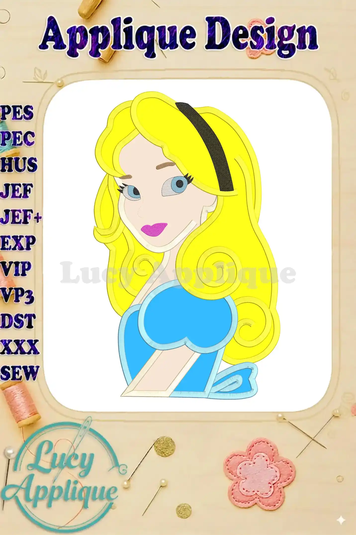 Alice in Wonderland Applique Embroidery Design – Instant Download