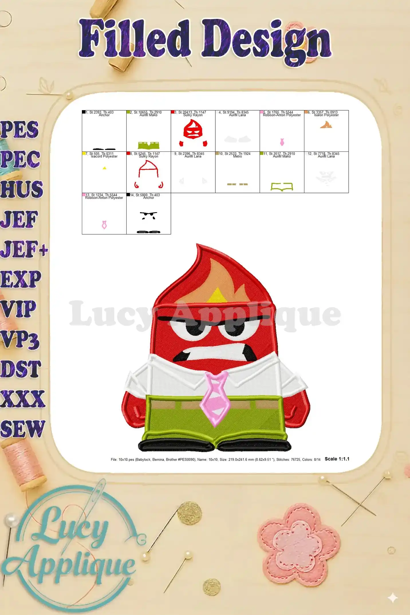 Anger Inside Out Fill Embroidery Design 01 – Instant Download