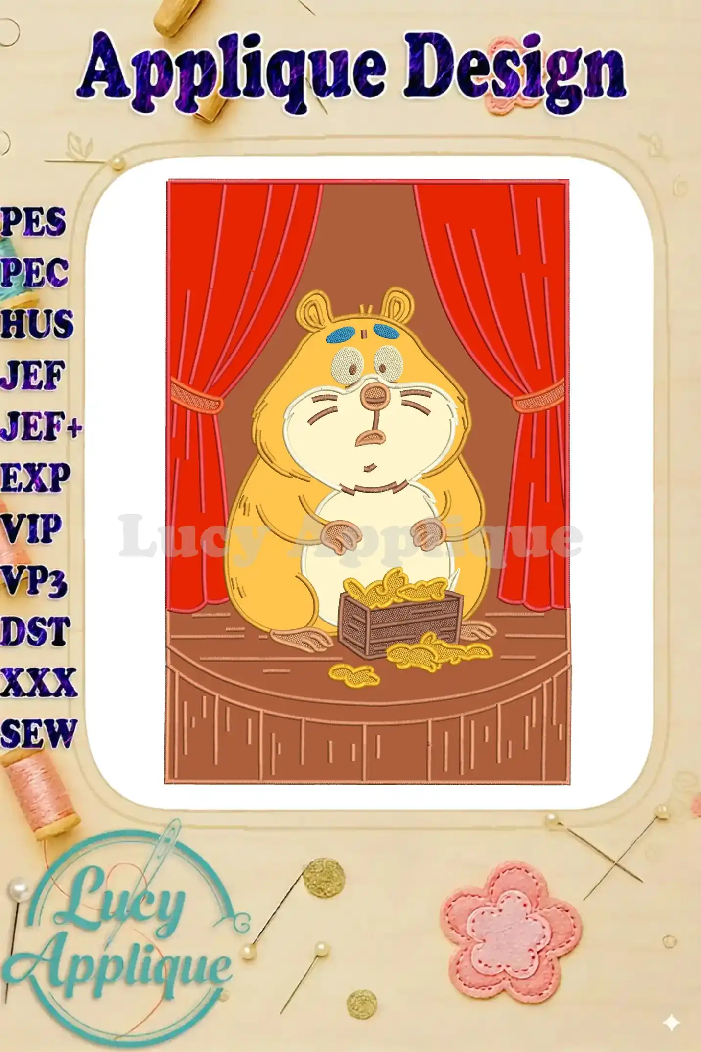 Applique Animal Crackers Hamster Worried on Stage Embroidery Designs