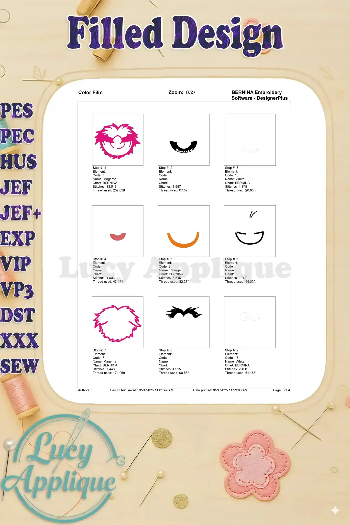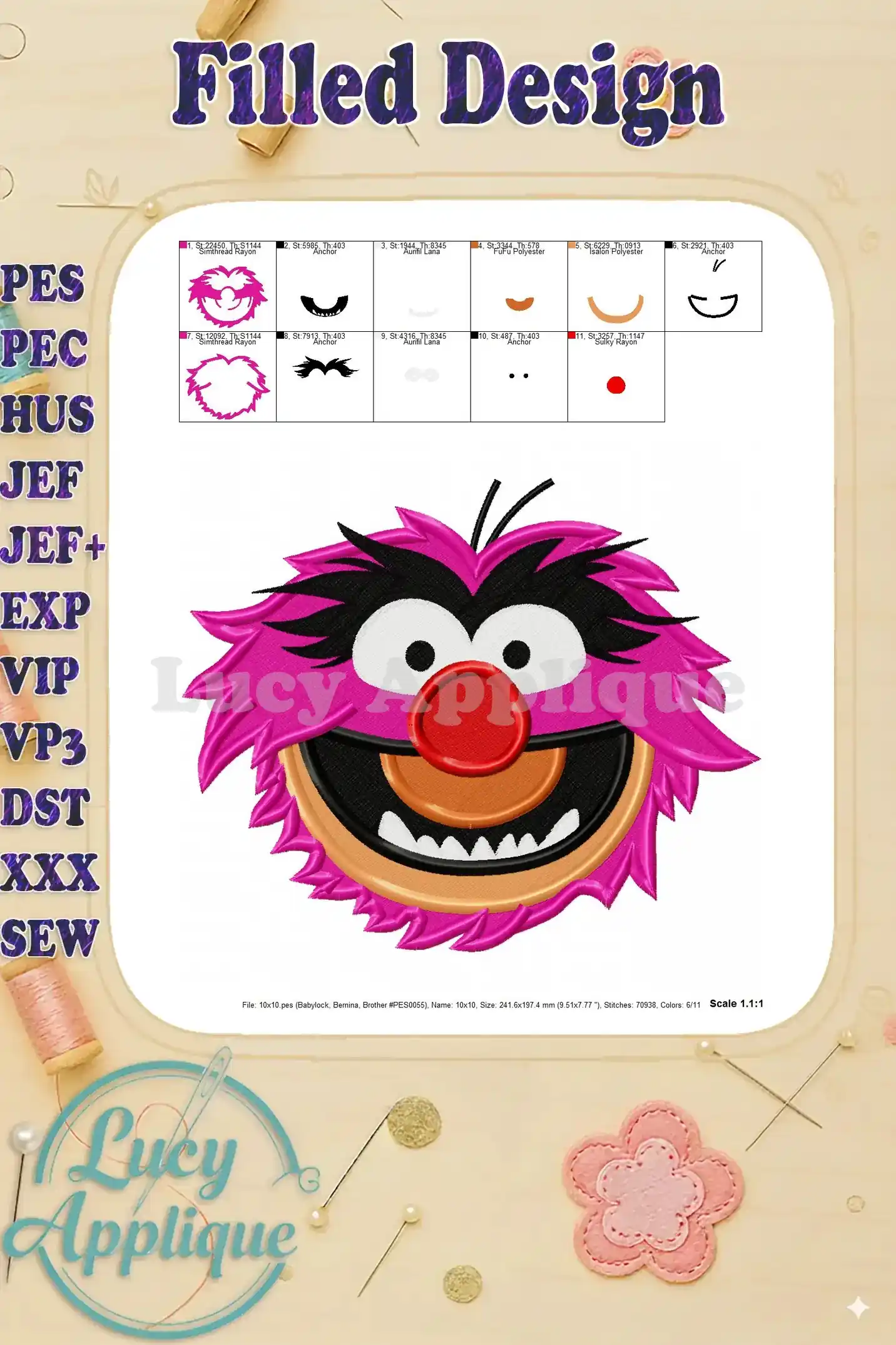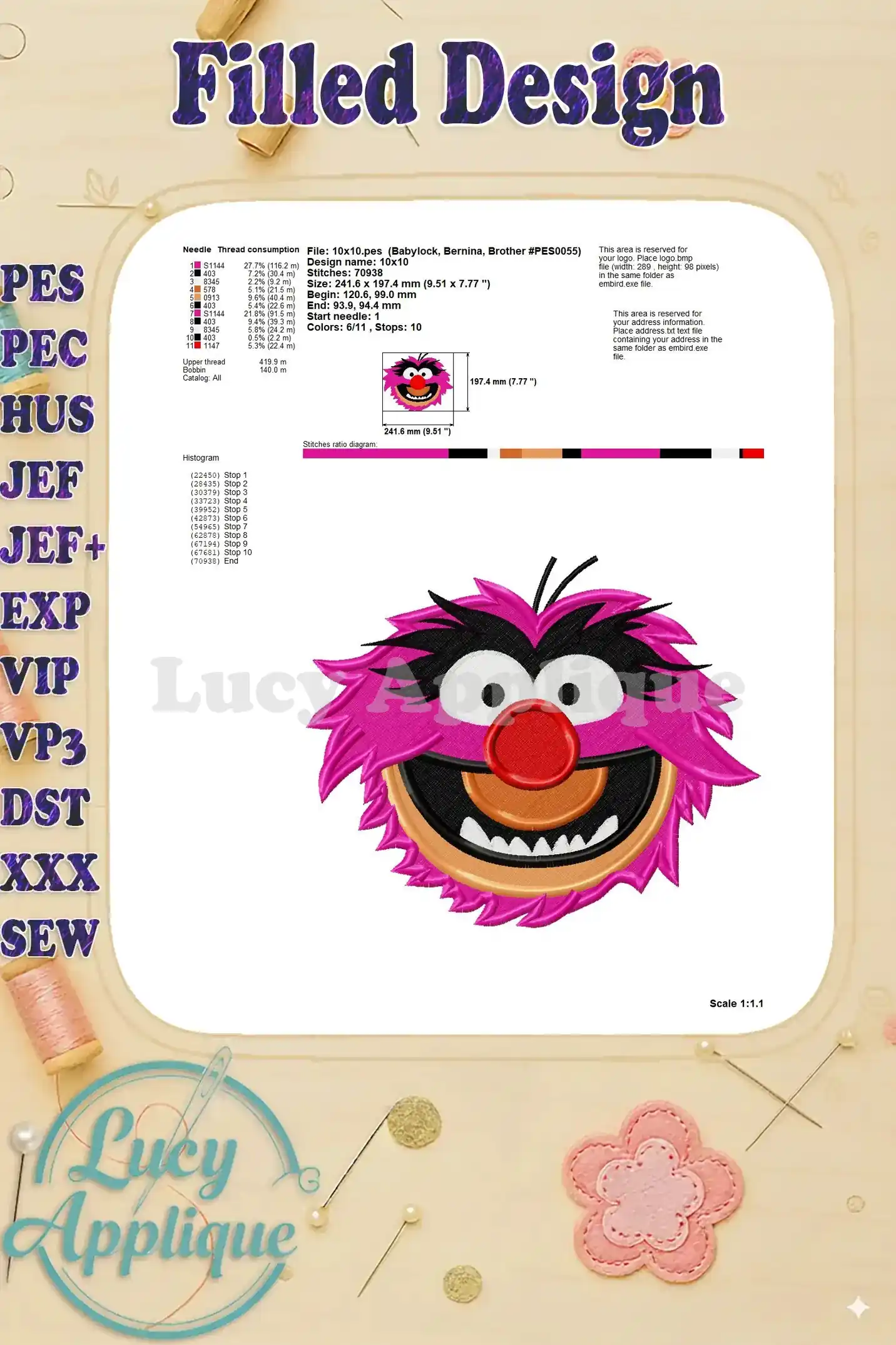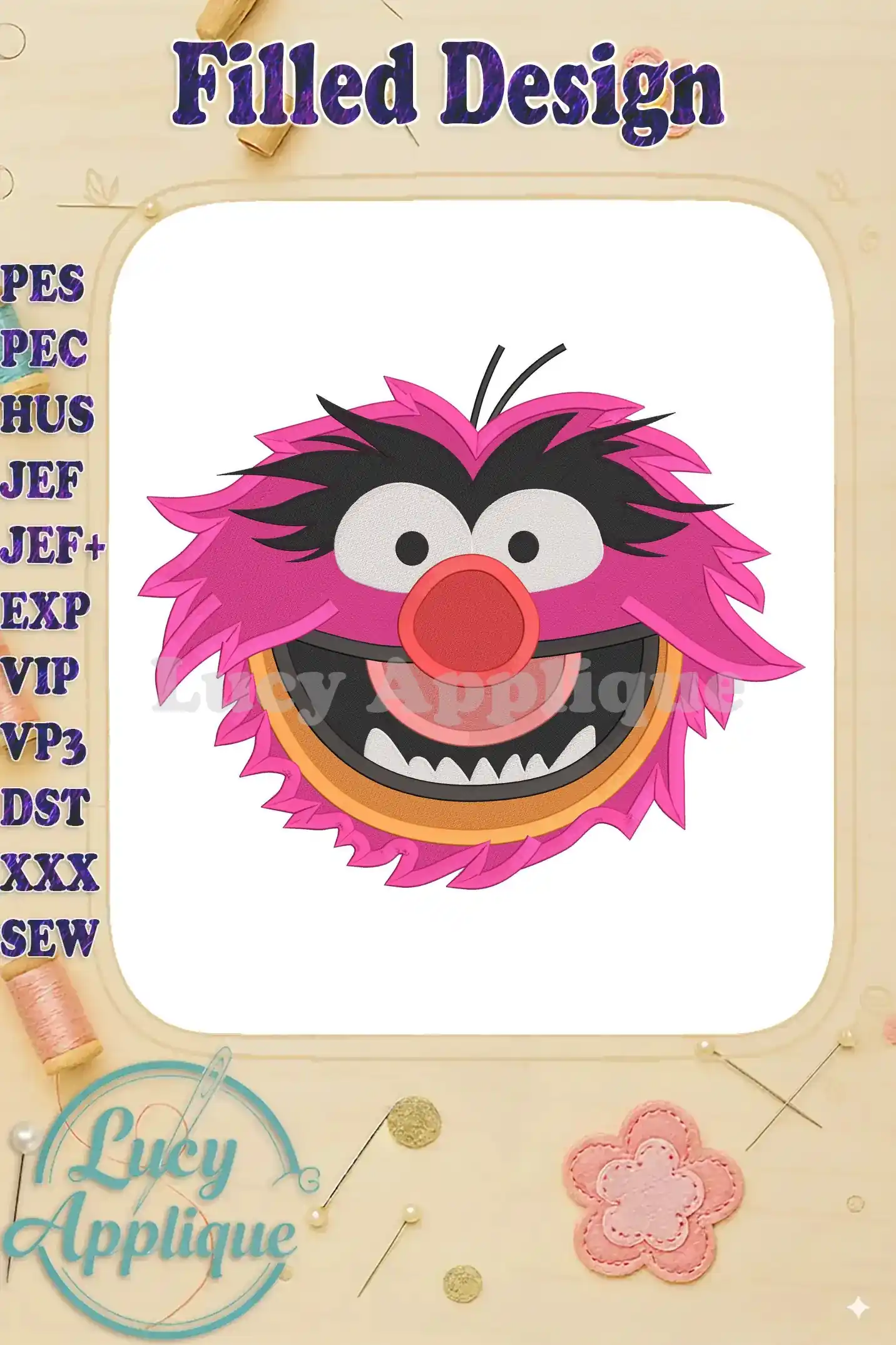 Animal Muppet Baby Head 01 Fill Embroidery Design – Instant Download