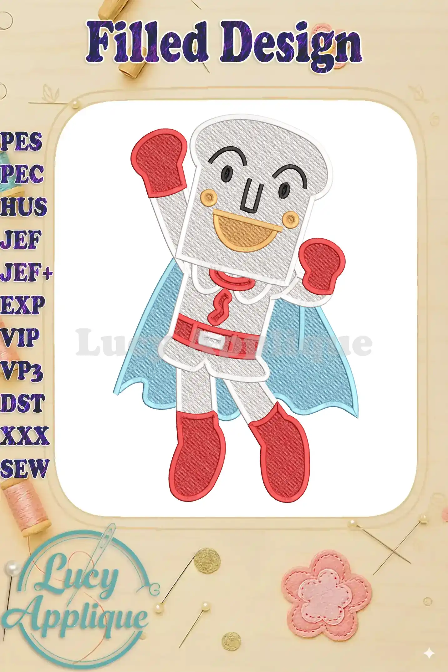 Anpanman Chapon’s Hero Toastman Flying Fill Embroidery Designs