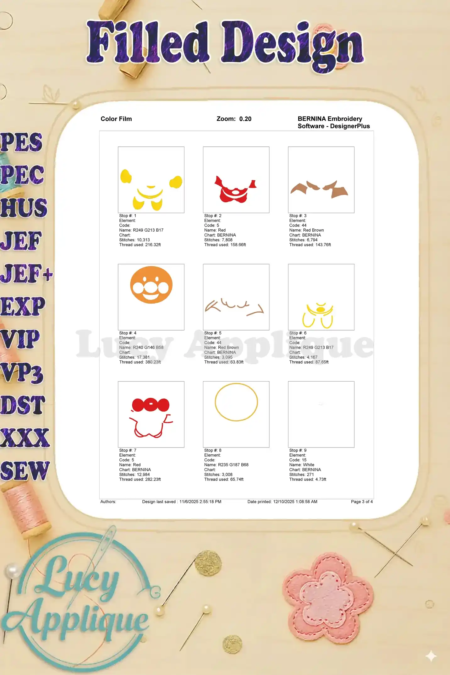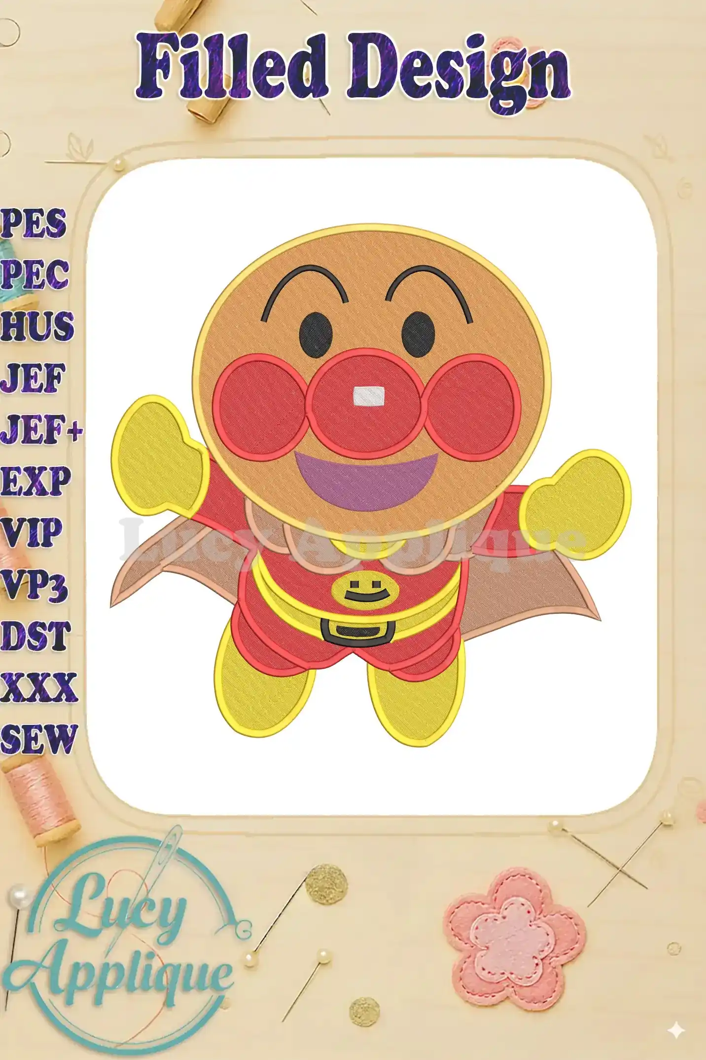Anpanman Chapon’s Hero vibrant fill embroidery designs for fans