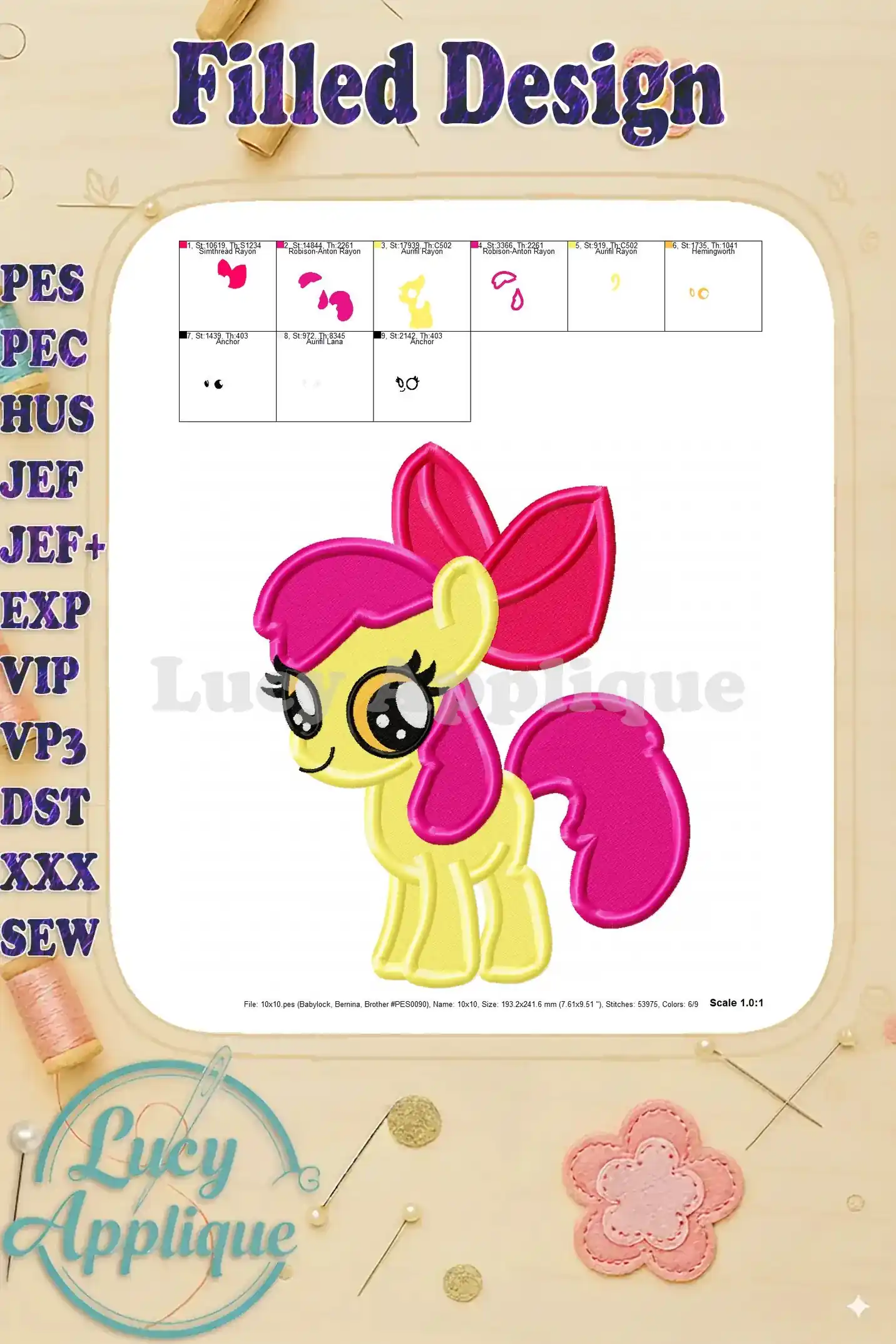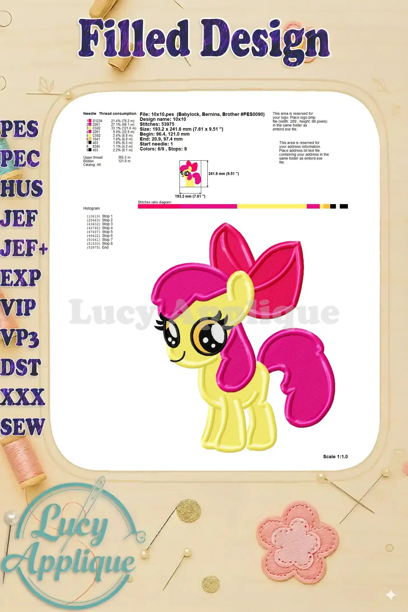 Apple Bloom My Little Pony Fill Machine Embroidery Design – Instant Download