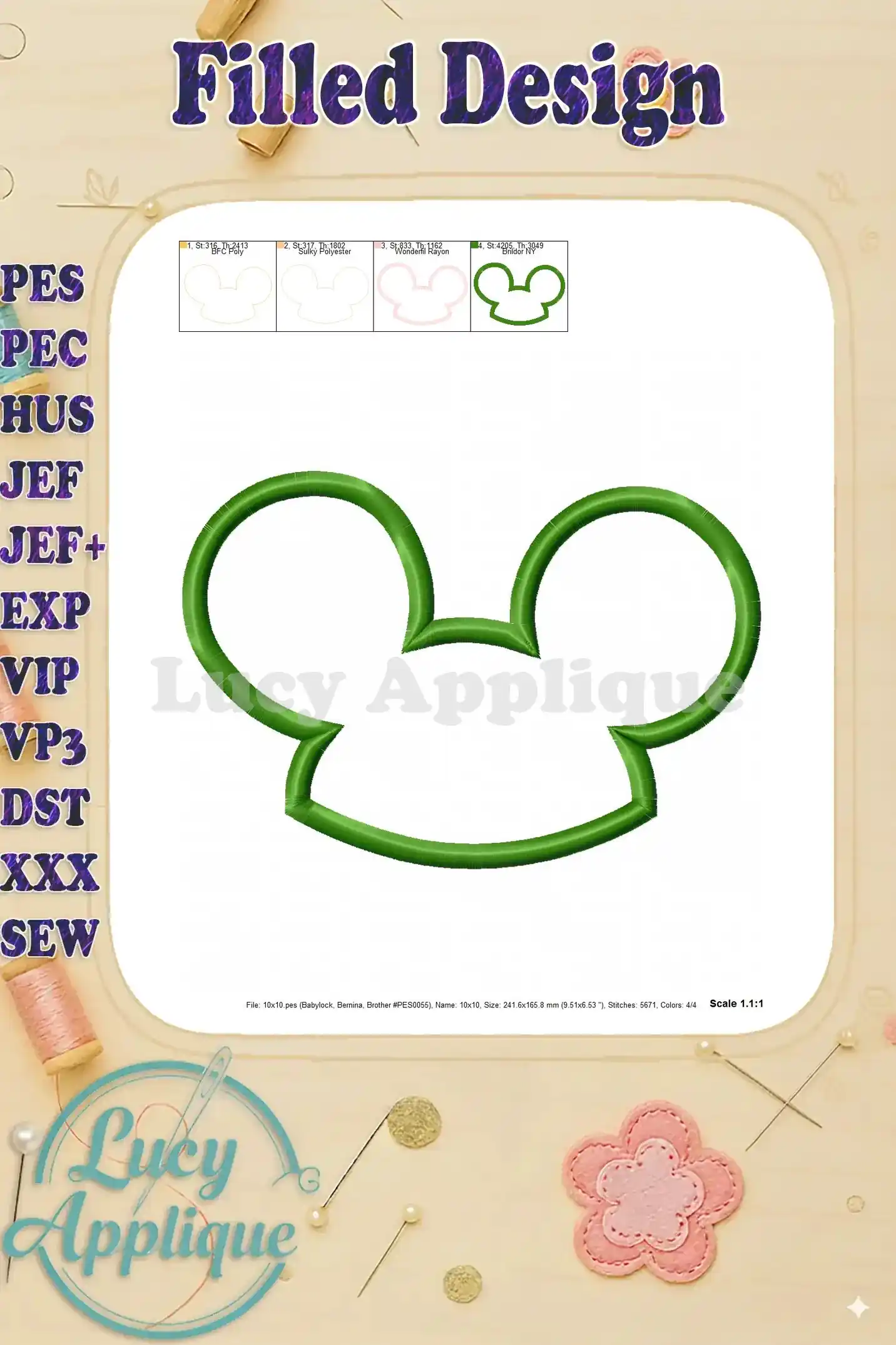 Applique Mickey Mouse 08 Embroidery Design – Instant Download