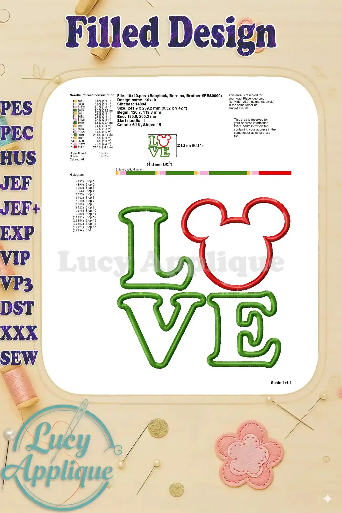 Applique Mickey Mouse Love 01 Embroidery Design – Instant Download