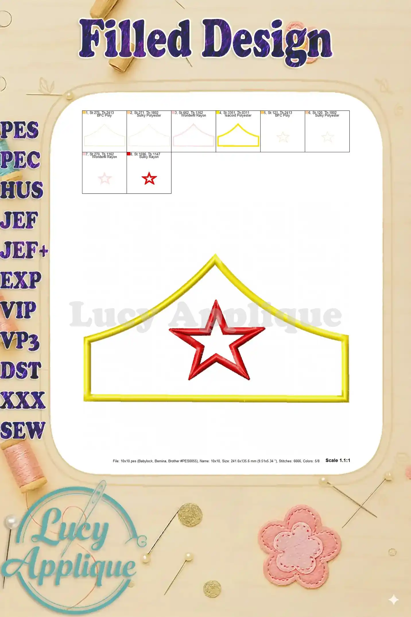 Applique Wonder Woman Tiara Embroidery Design – Instant Download