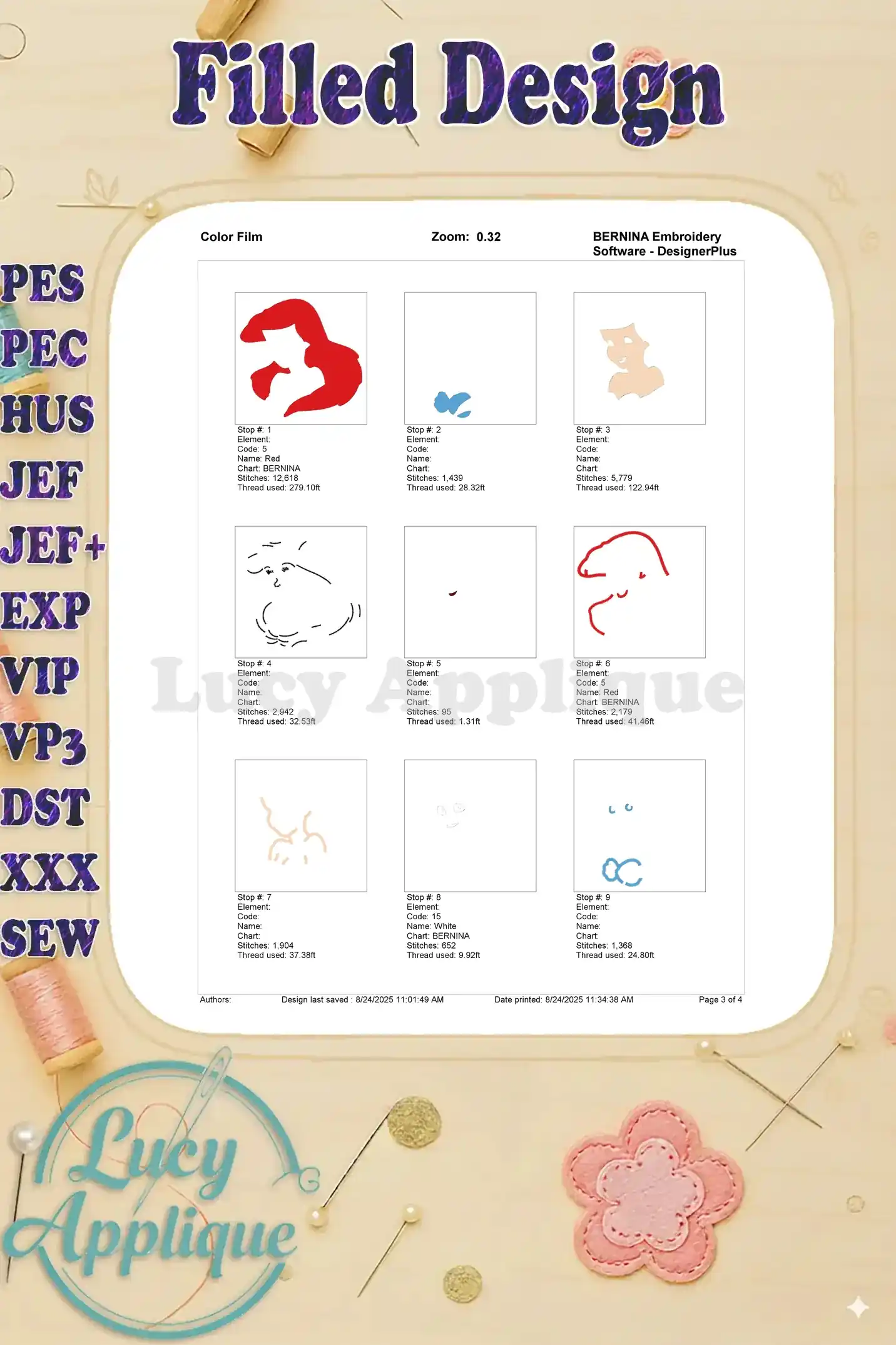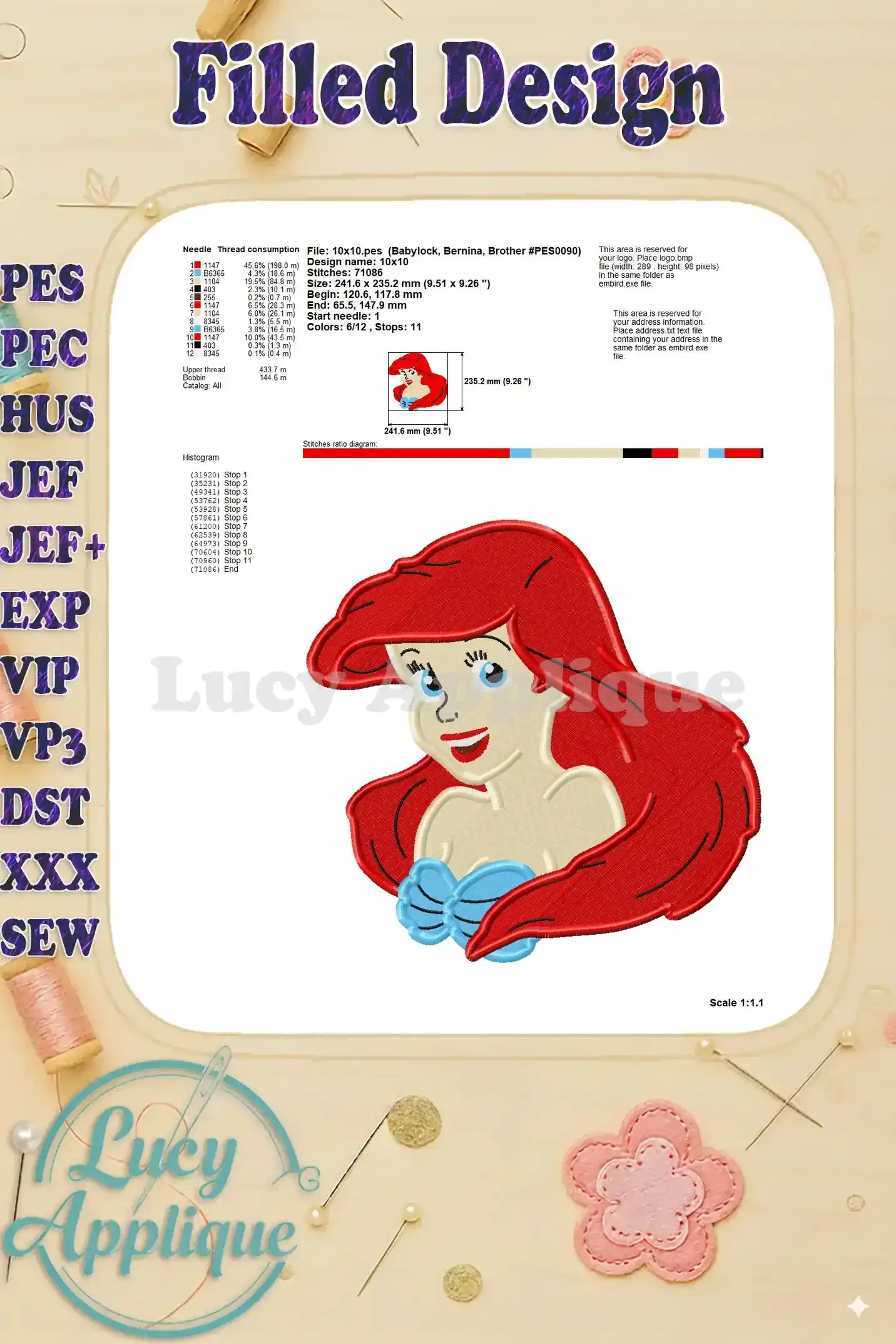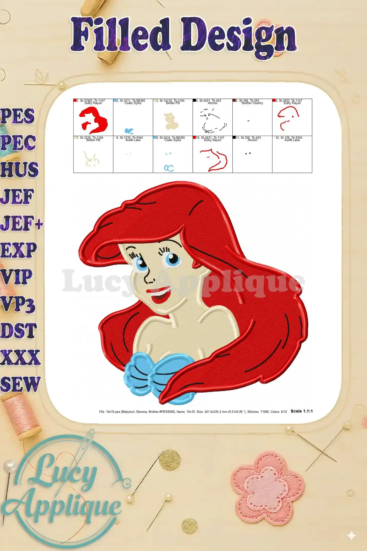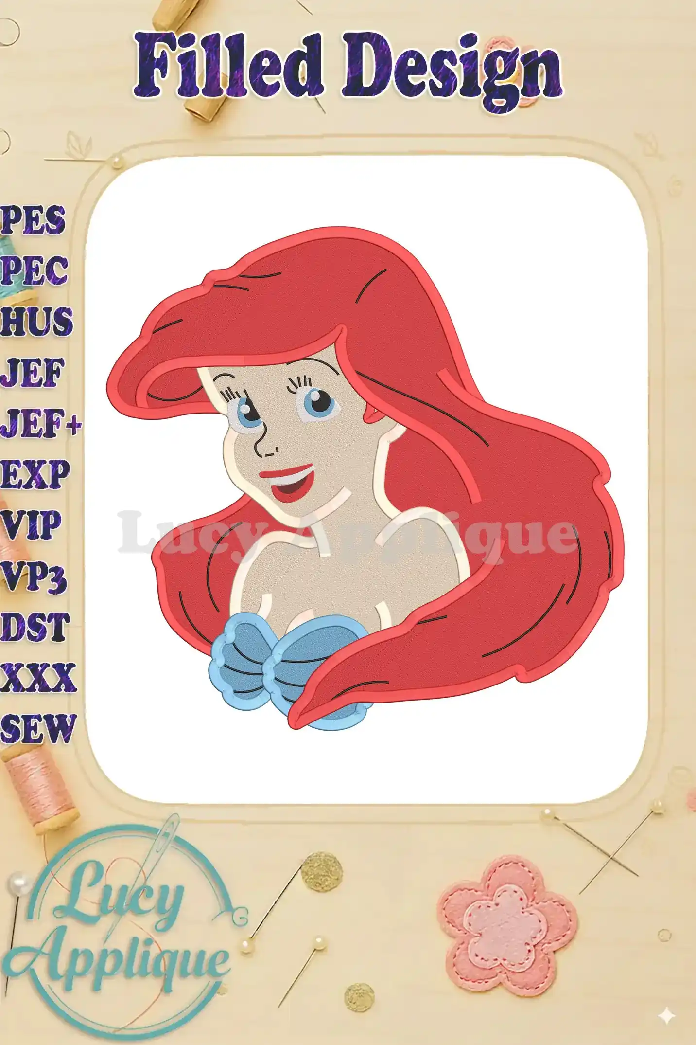 Ariel the Little Mermaid Fill Embroidery Design 01 – Instant Download