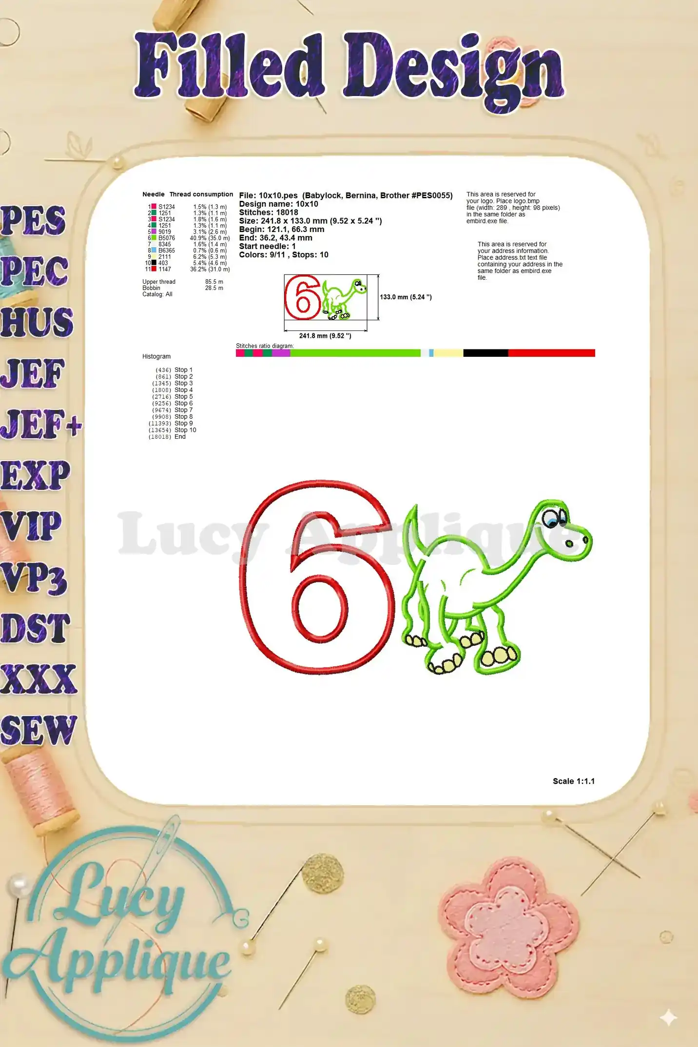 Arlo The Good Dinosaur Birthday Number 6 Applique Design – Instant Download
