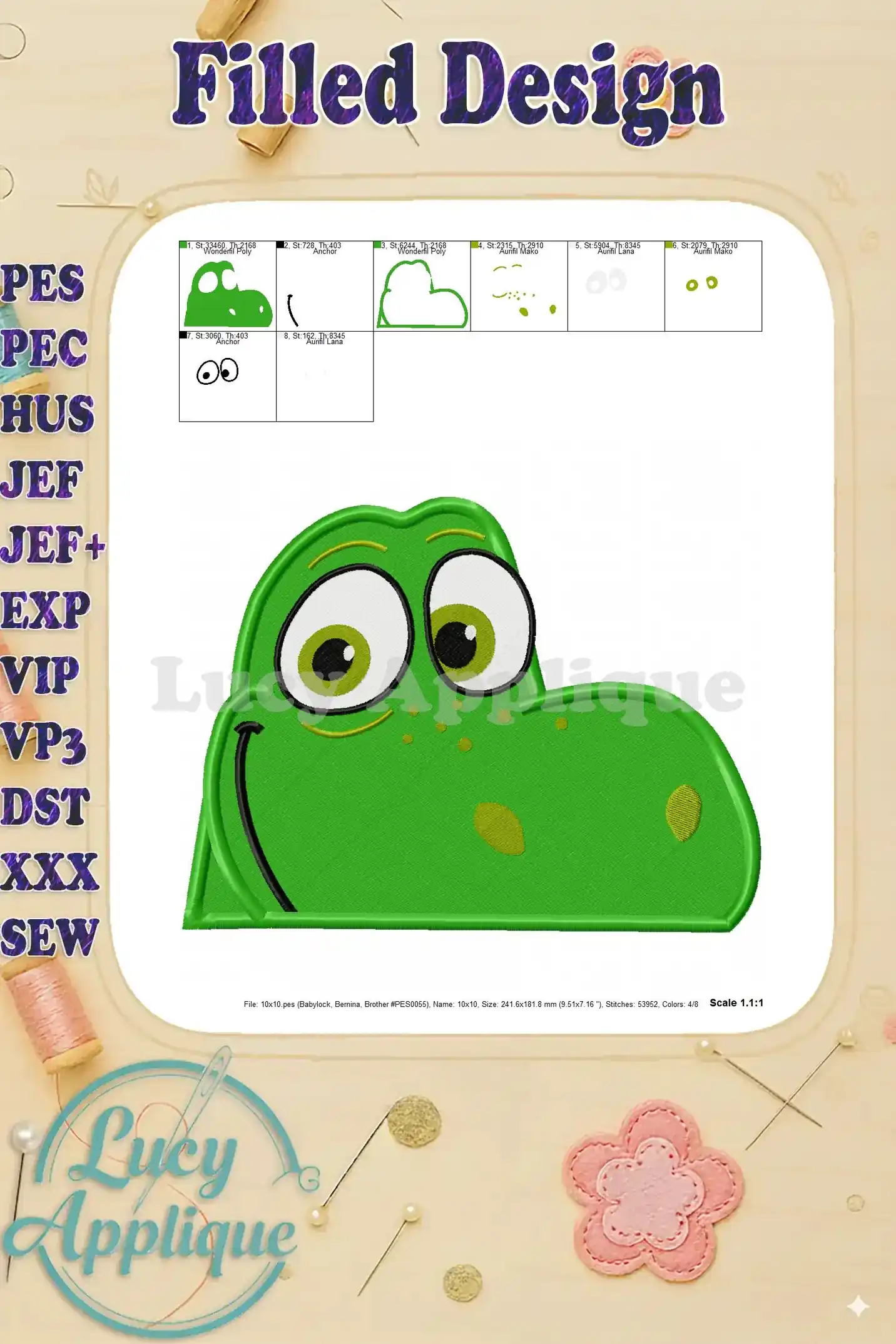 Arlo The Good Dinosaur Head Fill Machine Embroidery Design – Instant Download