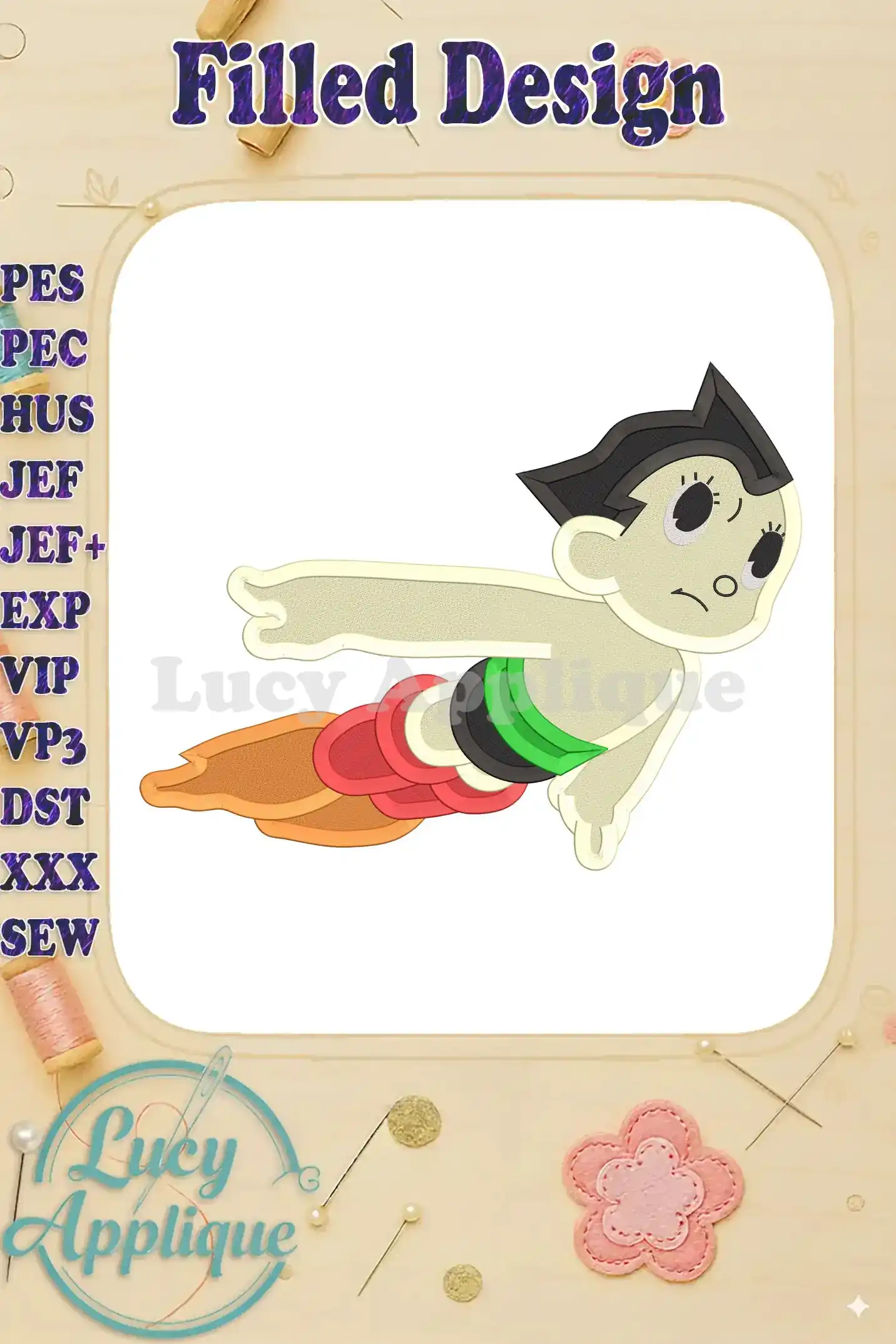 Astro Boy Flying Fill Machine Embroidery Design – Instant Download