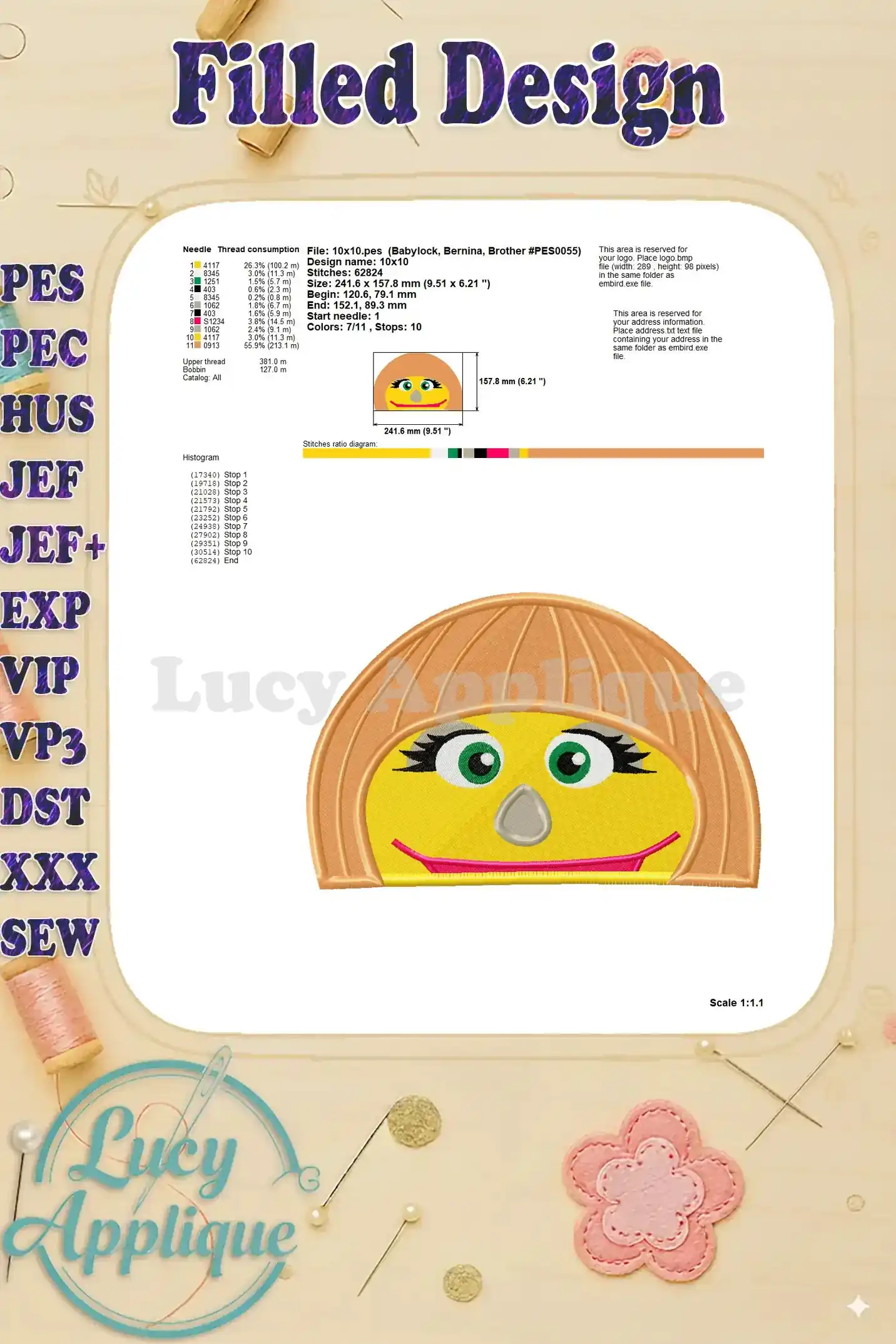 Autism Muppet Head Fill Machine Embroidery Design – Instant Download