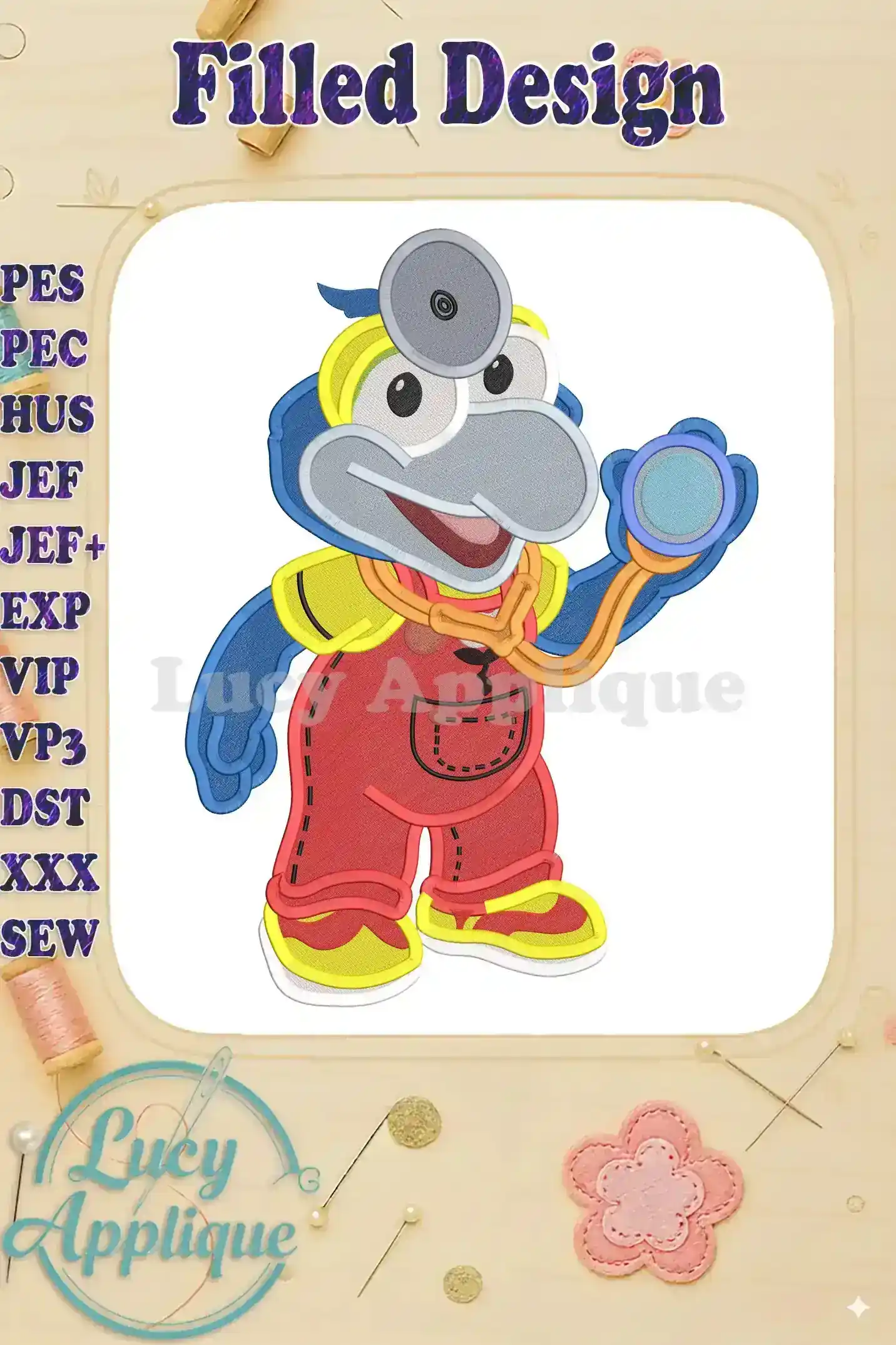 Adorable Gonzo Muppet Babies doctor design! Filled embroidery pattern, perfect for adding a whimsical touch to baby clothes or accessories. High-quality design, easy to stitch.