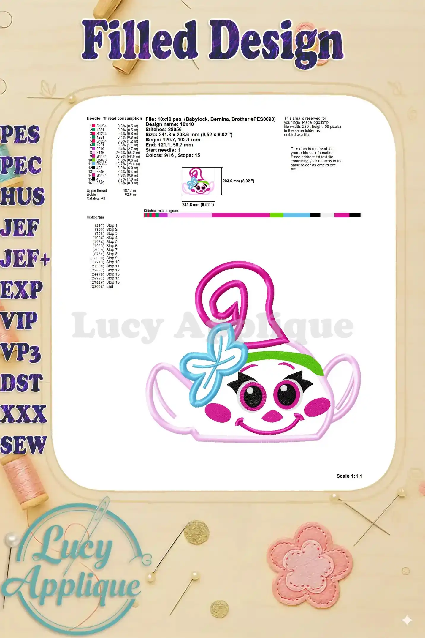 Baby Poppy Troll Applique Embroidery Design – Instant Download