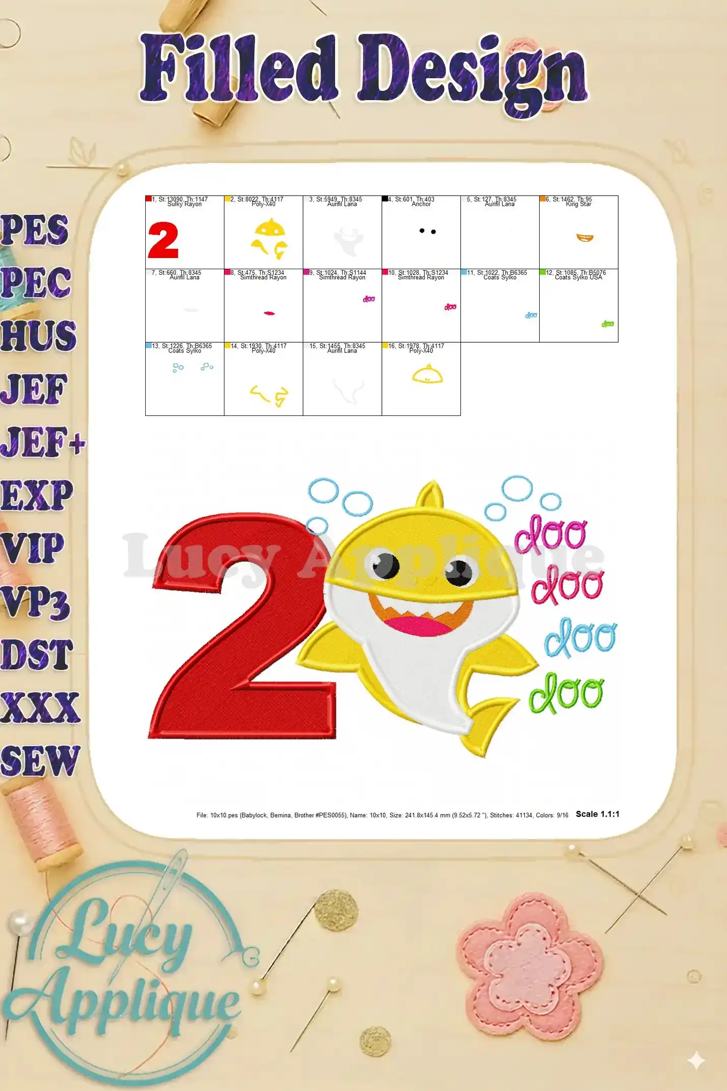Baby Shark doo doo doo doo Birthday Number 2 Fill Machine Embroidery Design – Instant Download