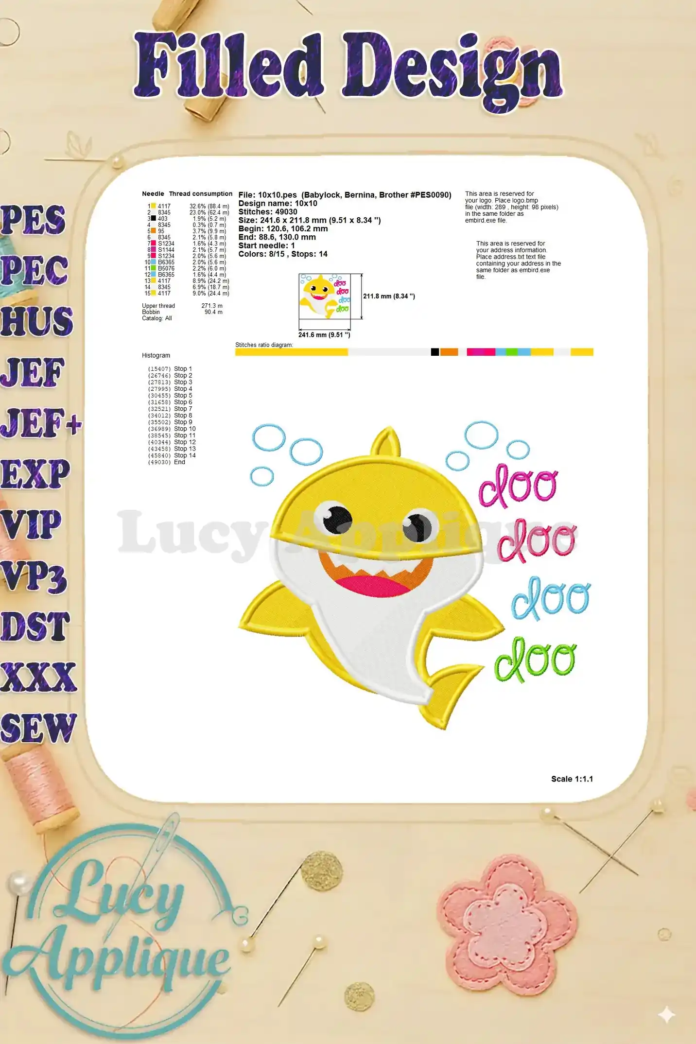 Baby Shark doo doo doo doo Fill Machine Embroidery Design – Instant Download