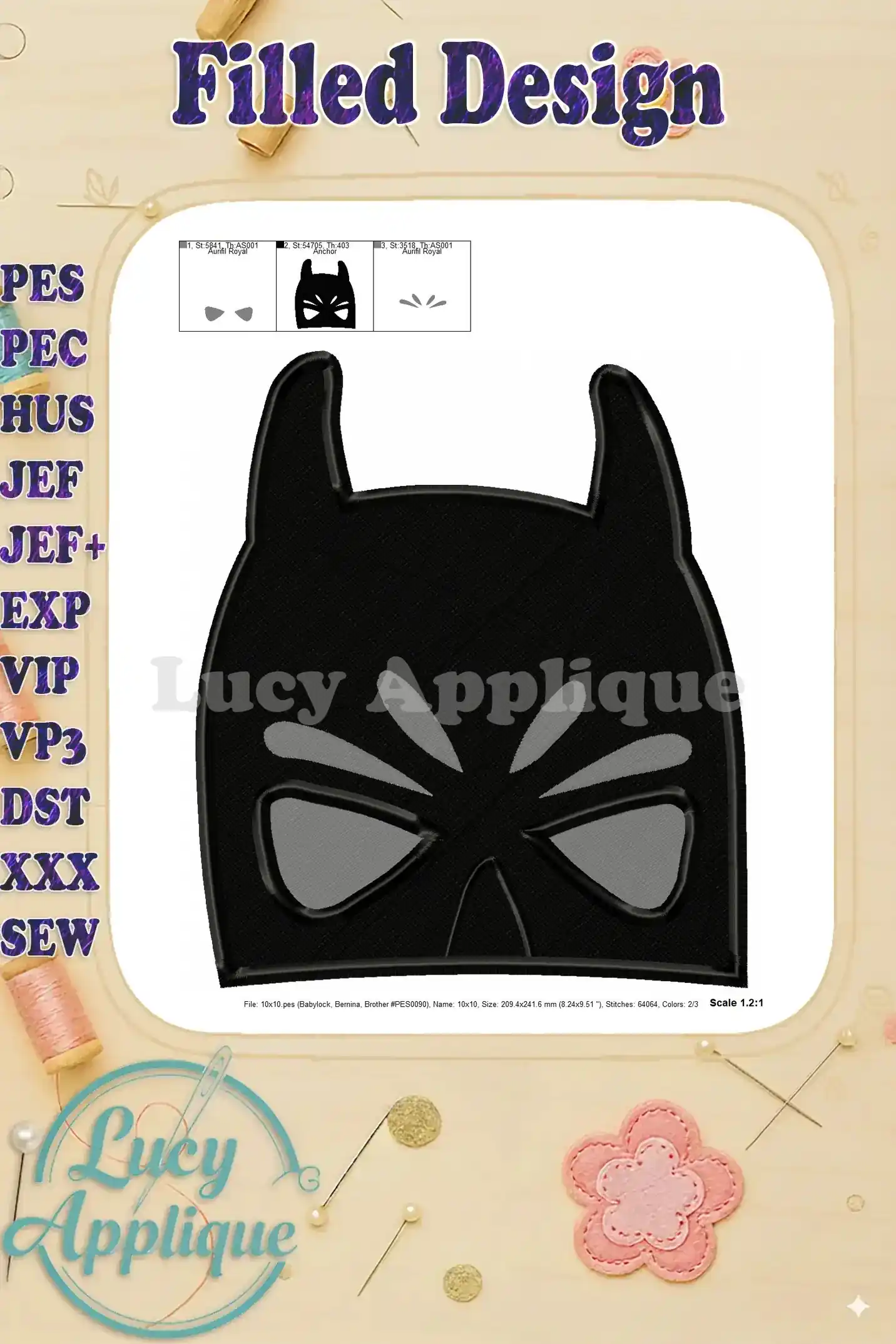 Batman Head Fill Machine Embroidery Design – Instant Download