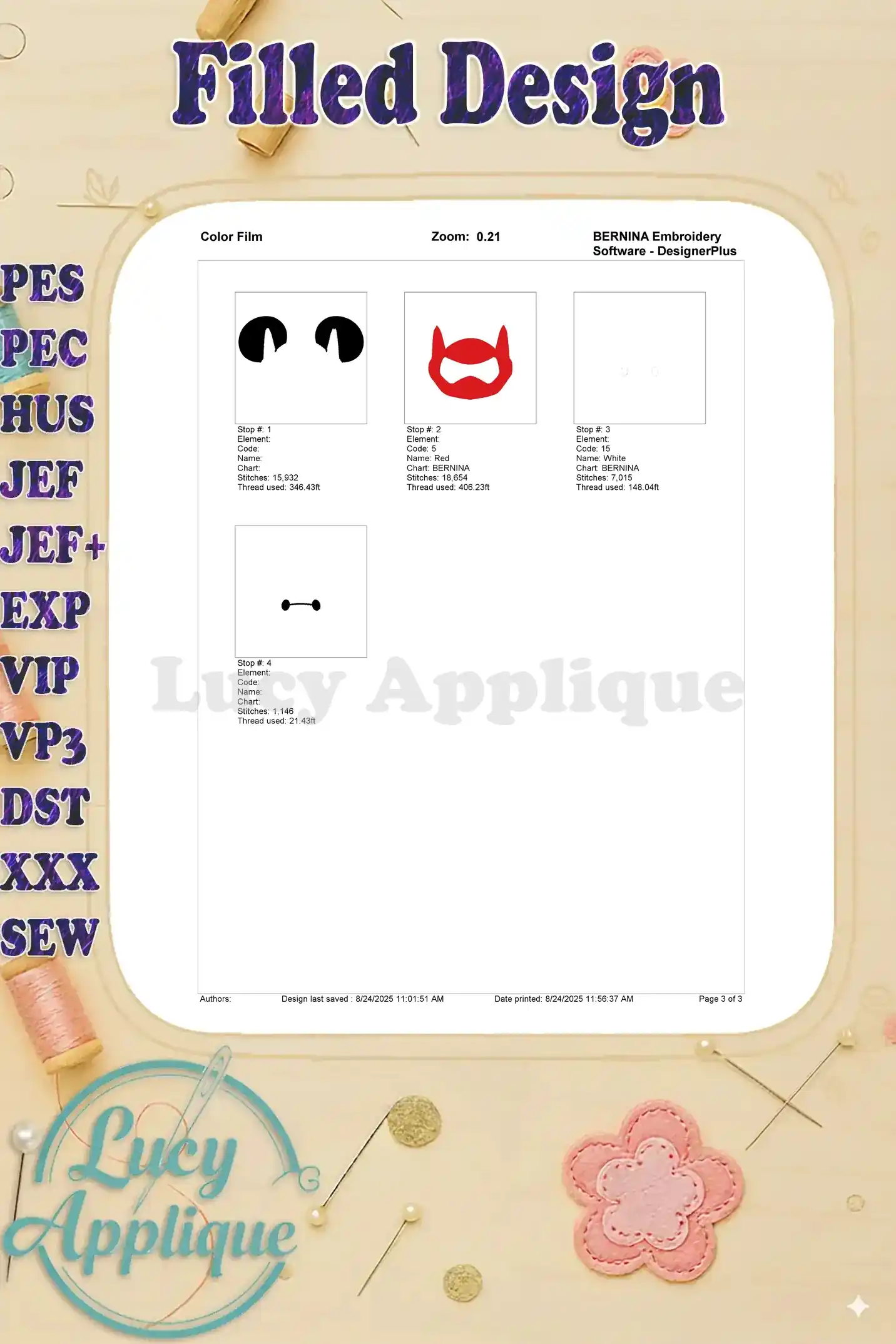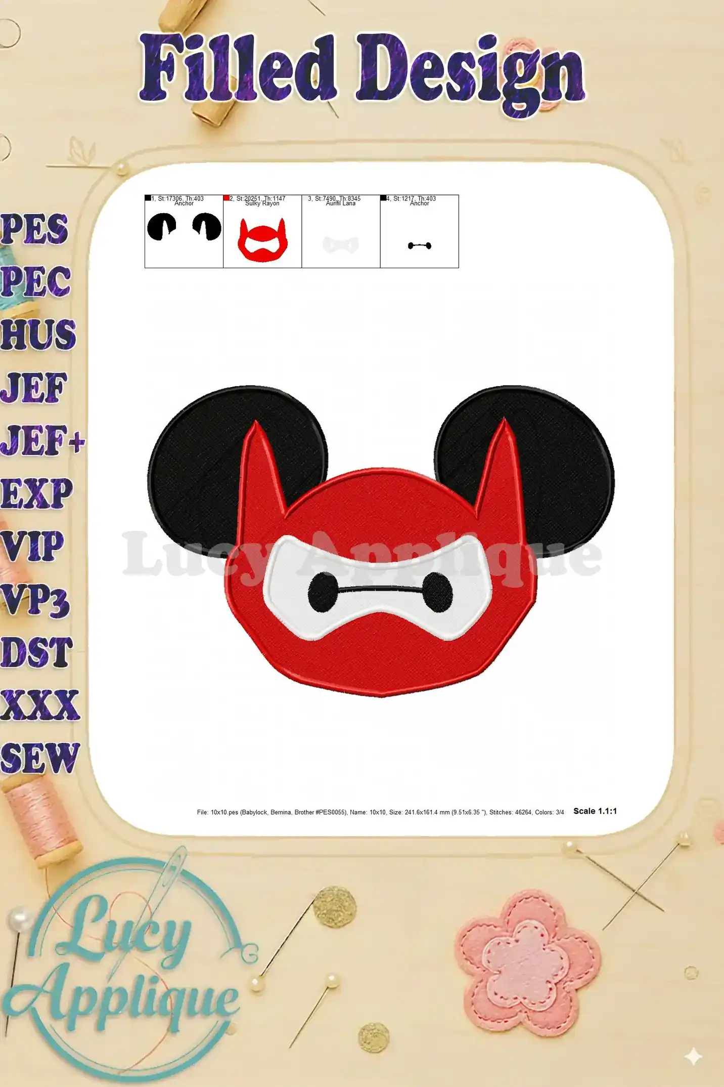 Baymax Ears Big Hero Mickey Mouse Filled Embroidery Design – Instant Download