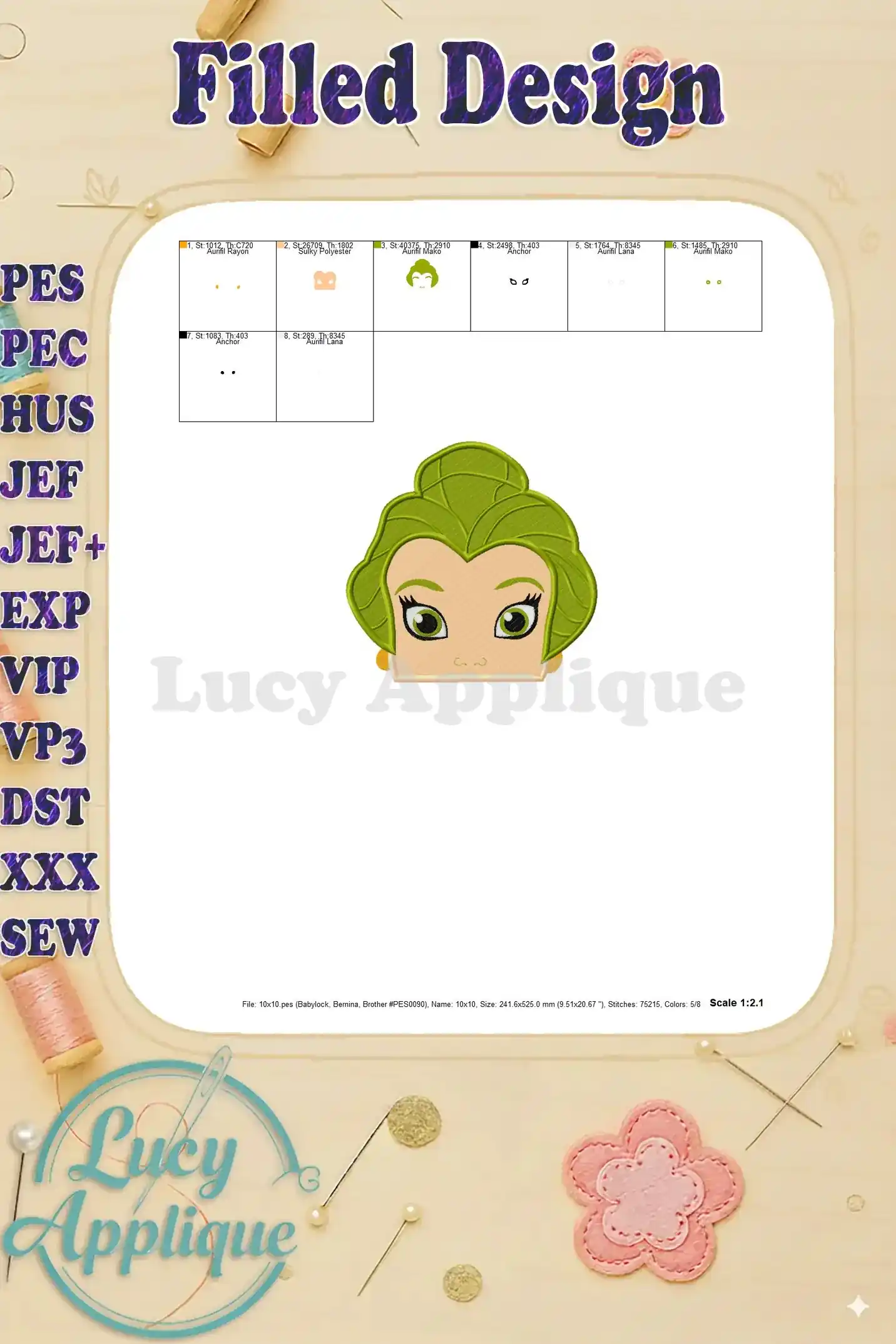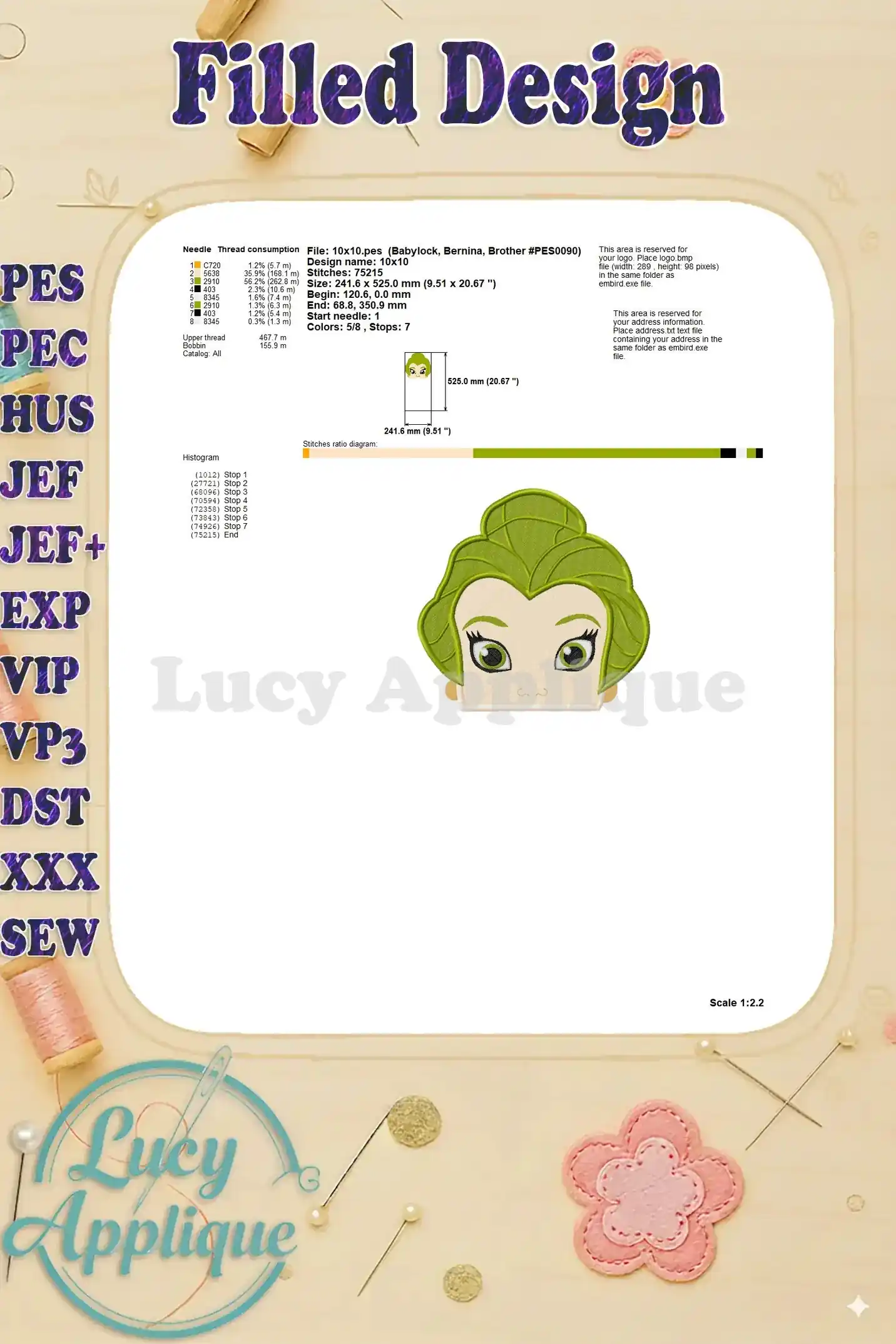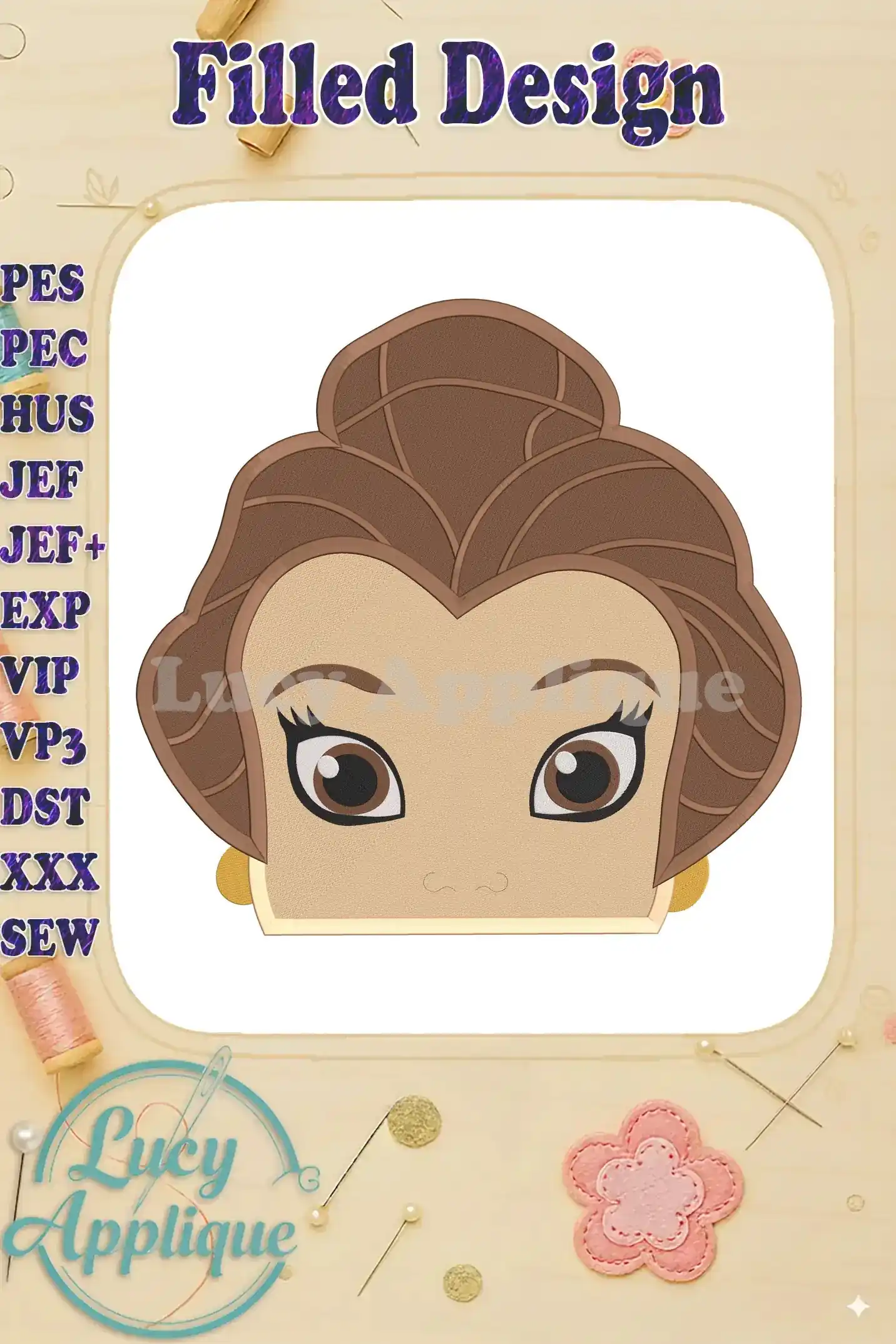 Belle Beauty and the Beast Head Fill Machine Embroidery Design – Instant Download