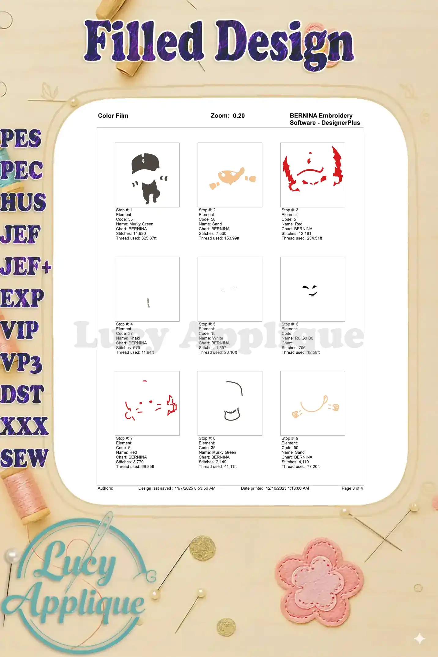 | Stitches | Colors | Thread Changes |