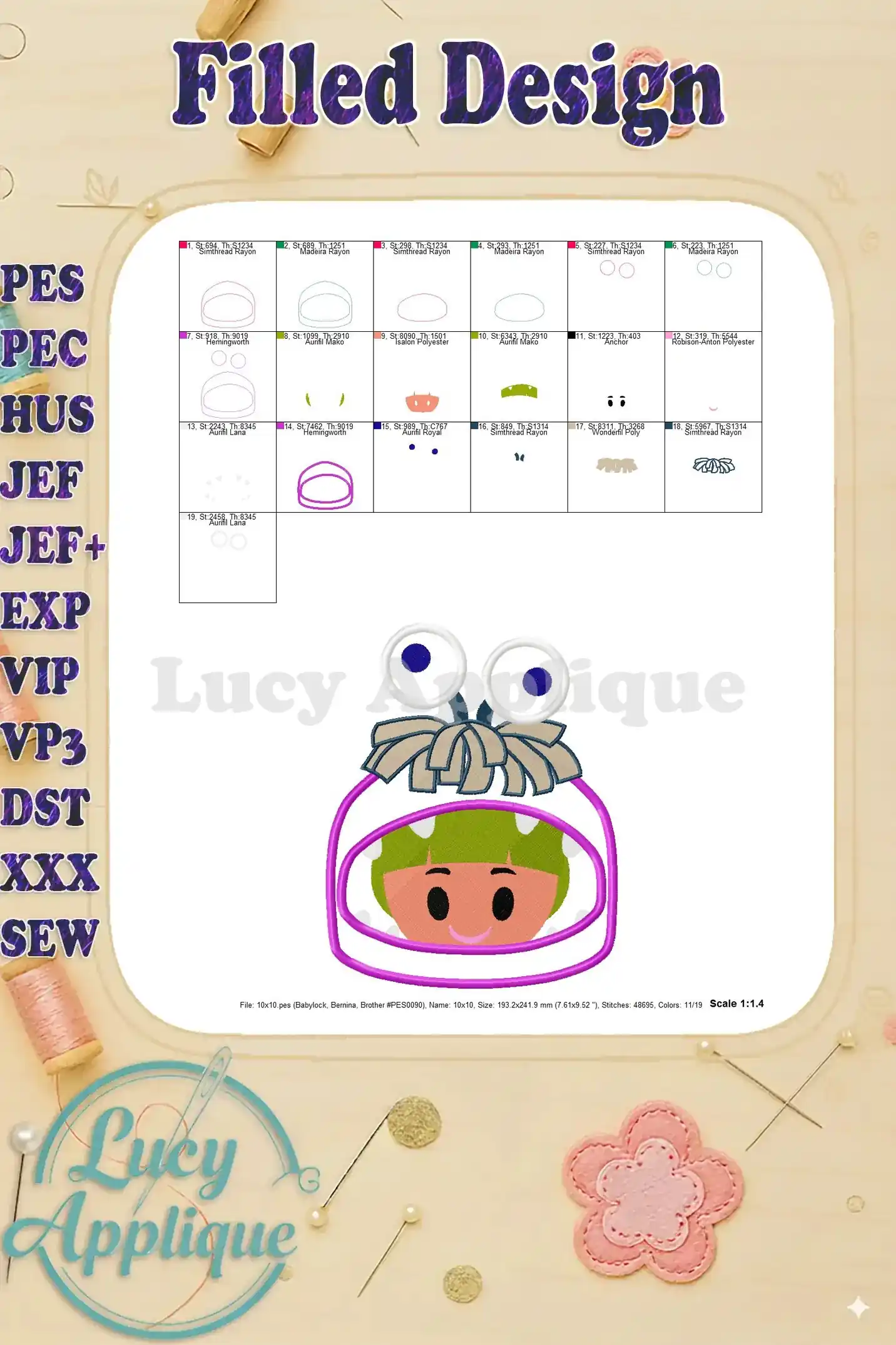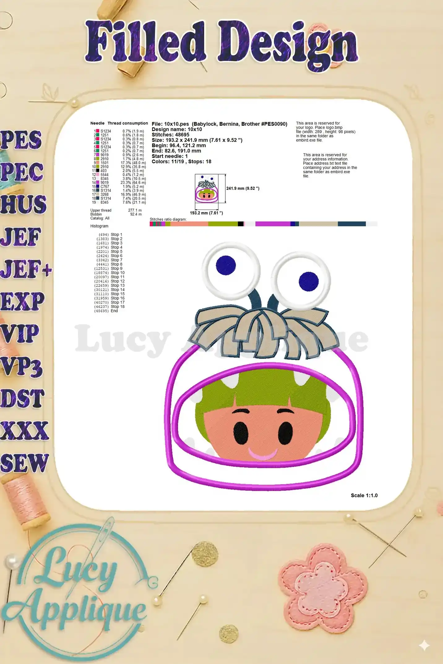 Boo Monsters Inc Emoji Applique Embroidery Design – Instant Download