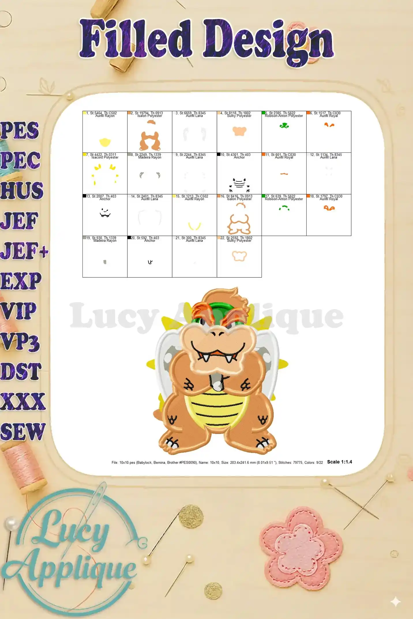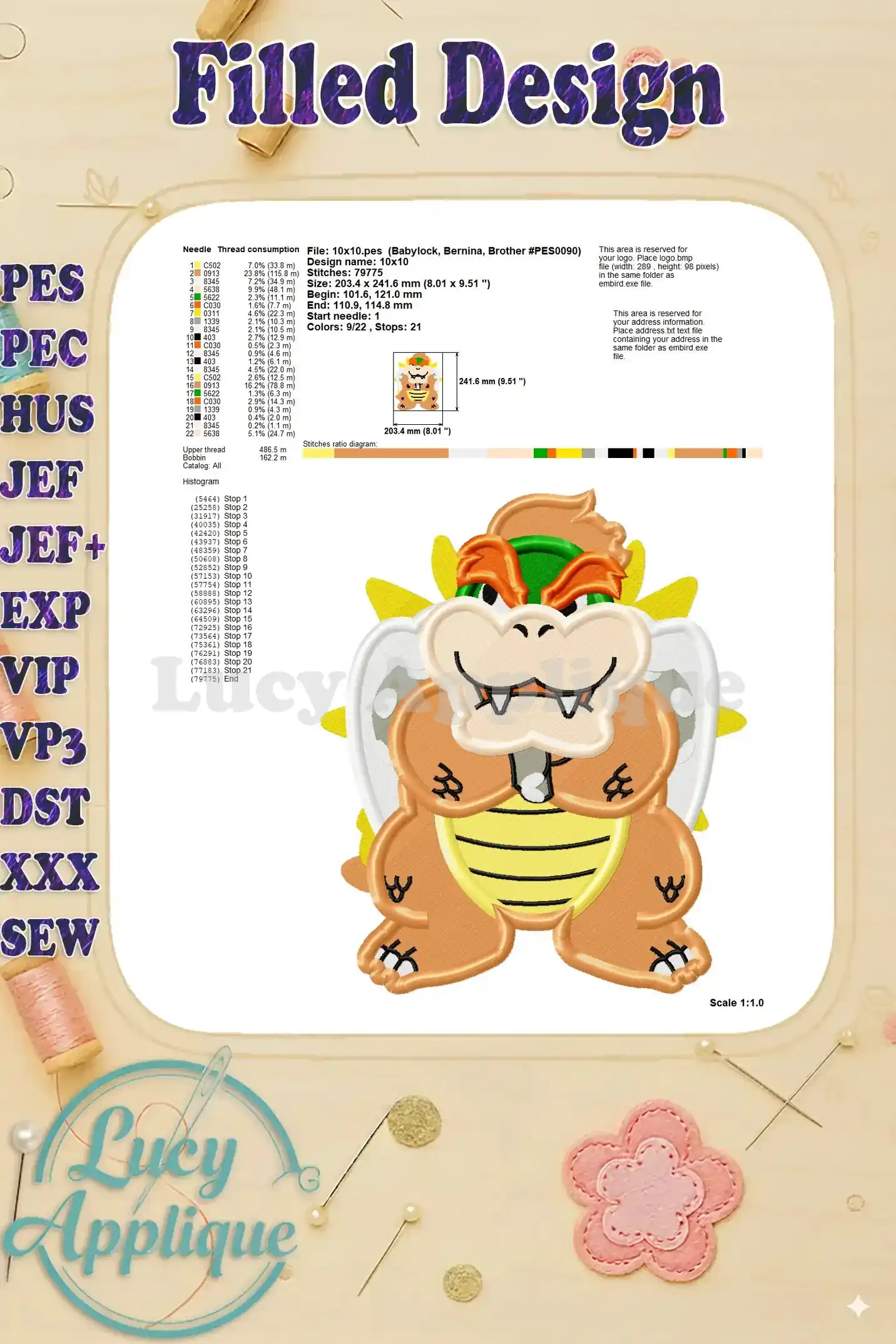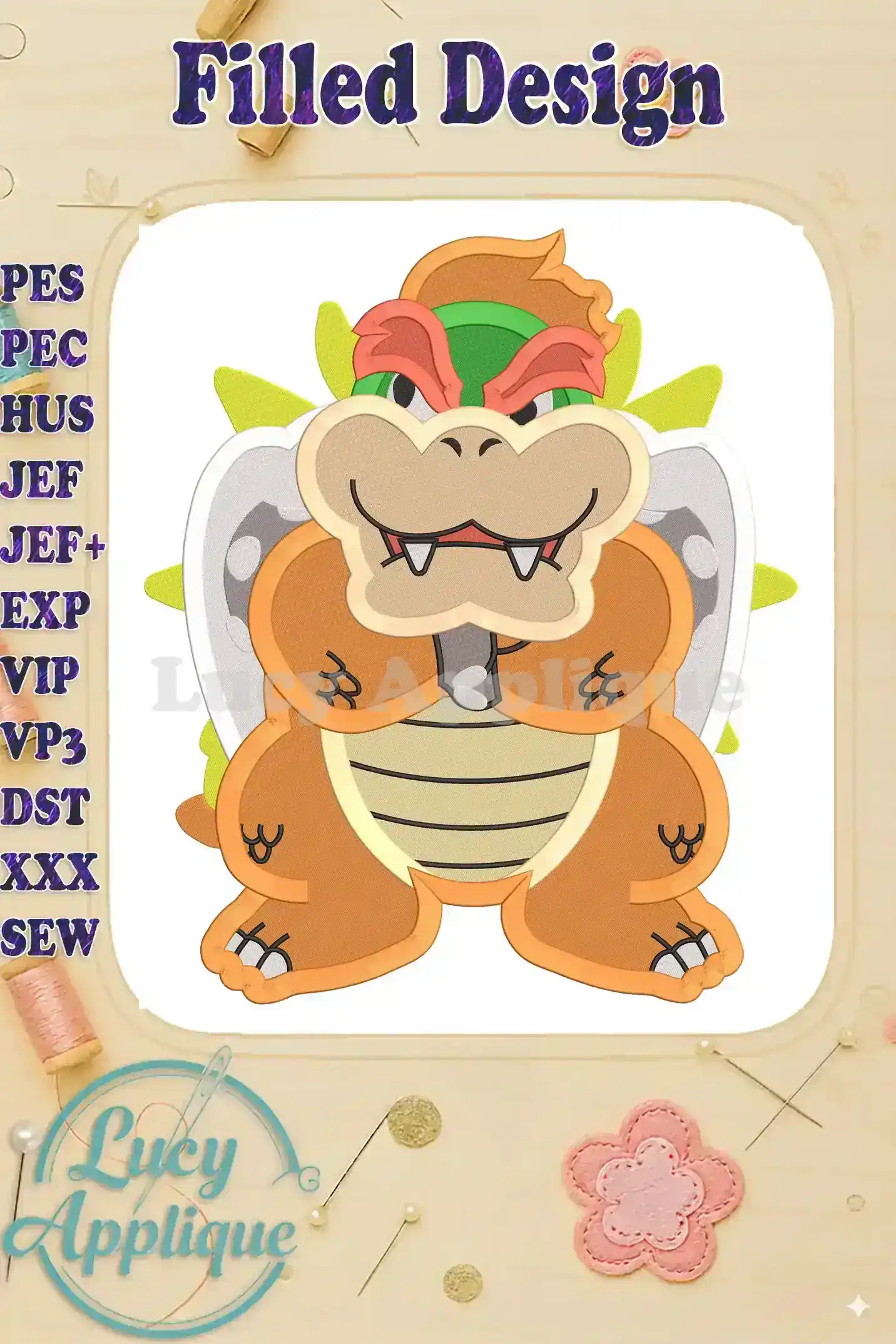 Bowser Super Mario Fill Machine 01 Embroidery Design – Instant Download