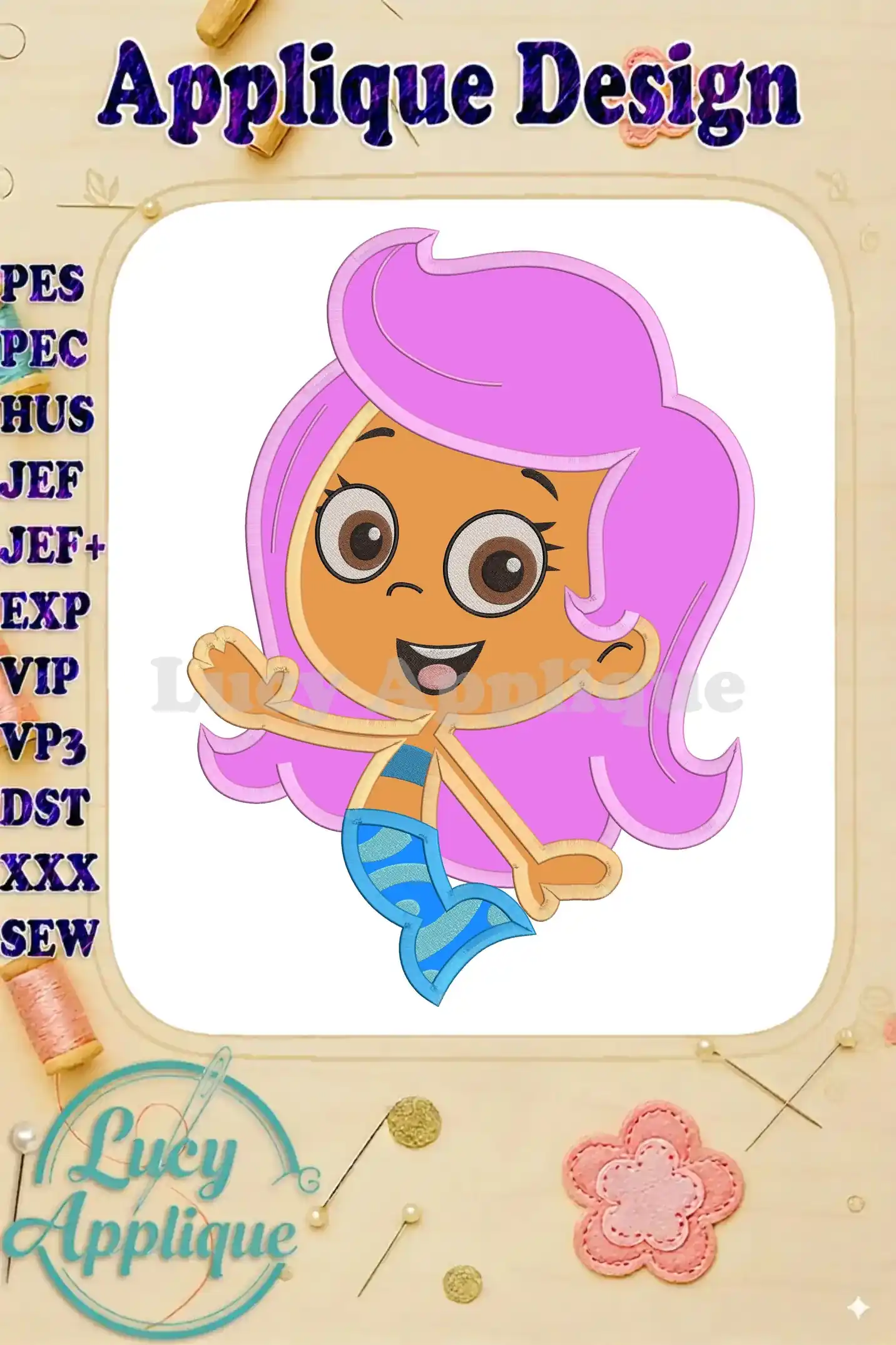 Bubble Guppies Molly Applique Embroidery Design – Instant Download
