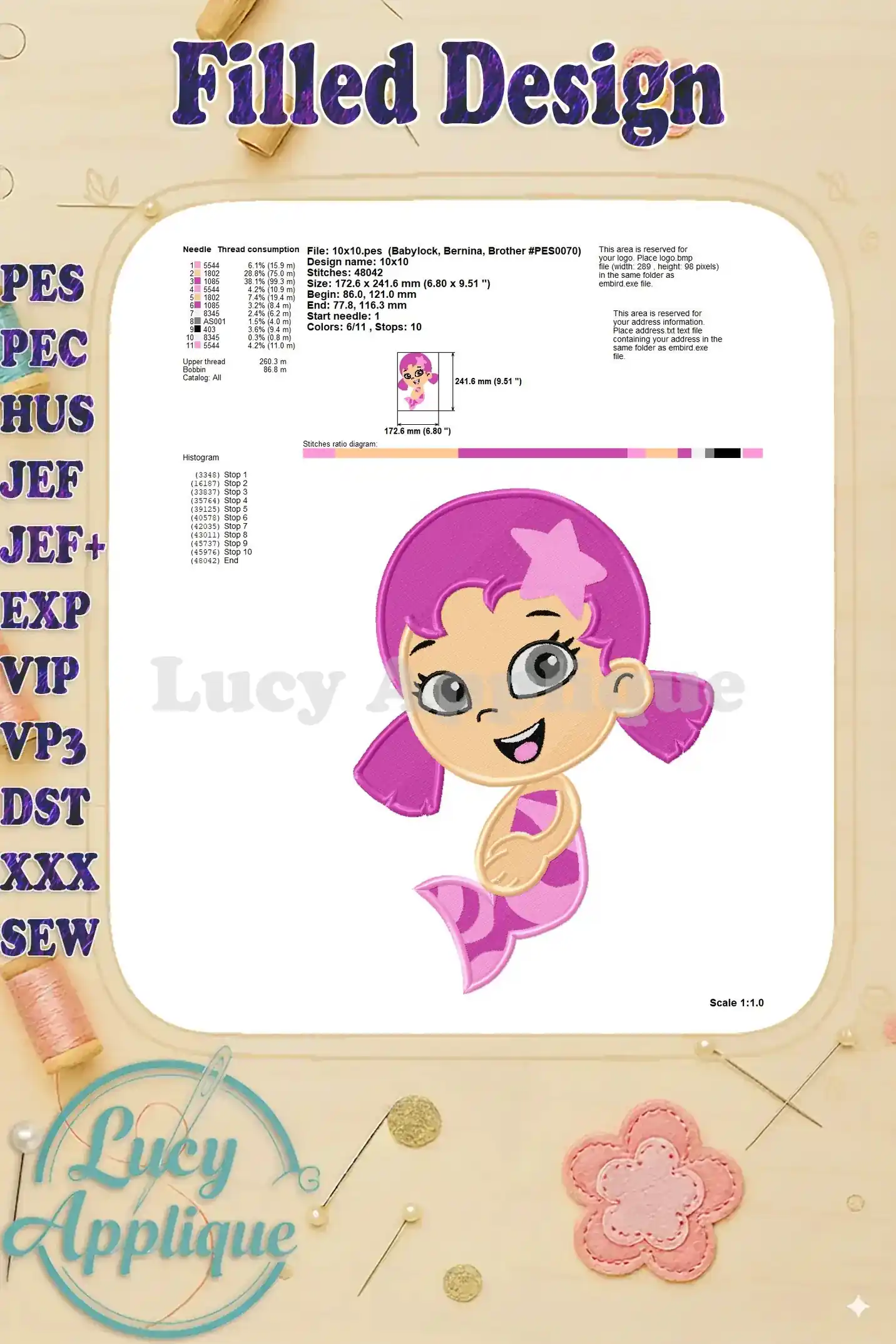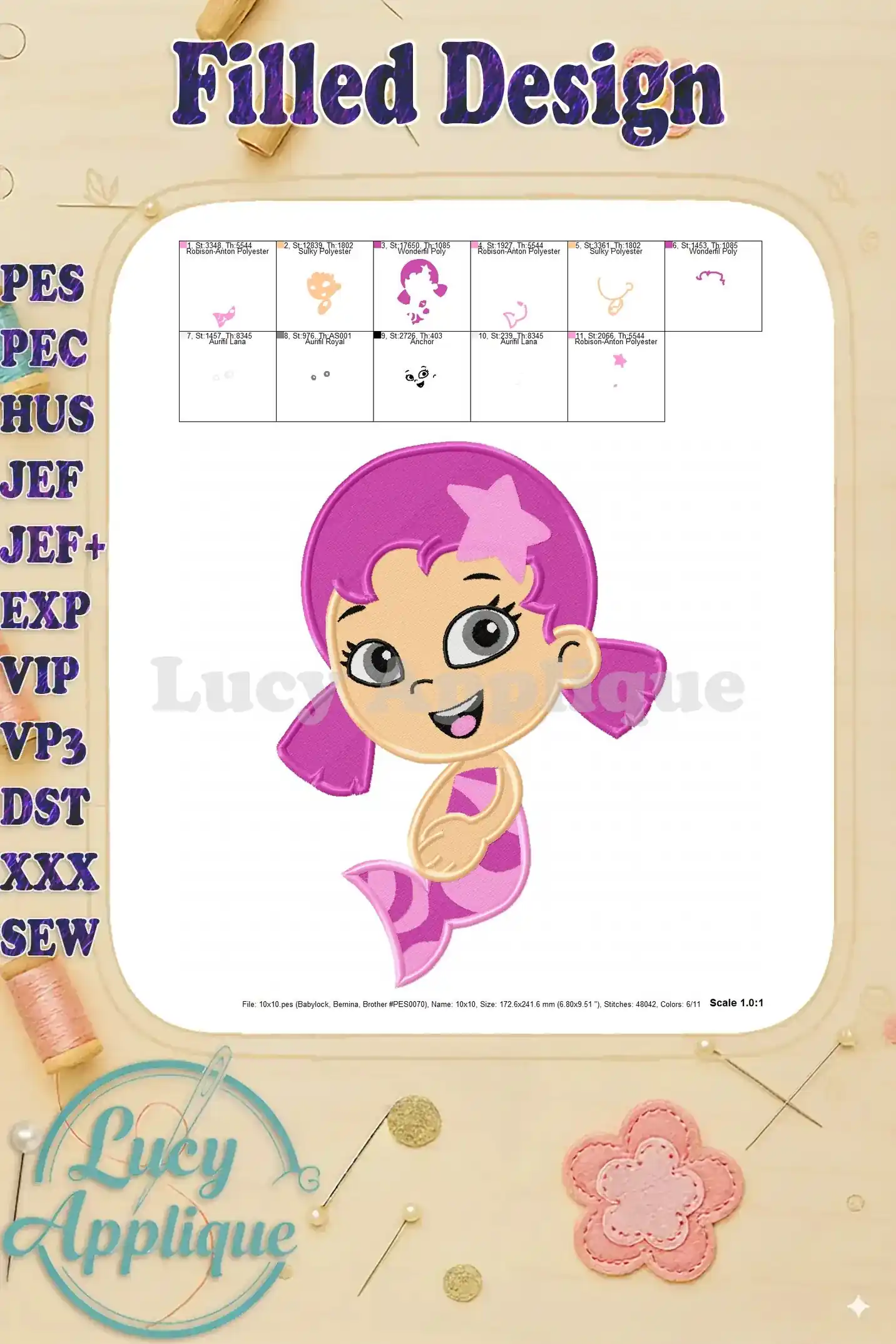Bubble Guppies Oona Fill Machine Embroidery Design – Instant Download