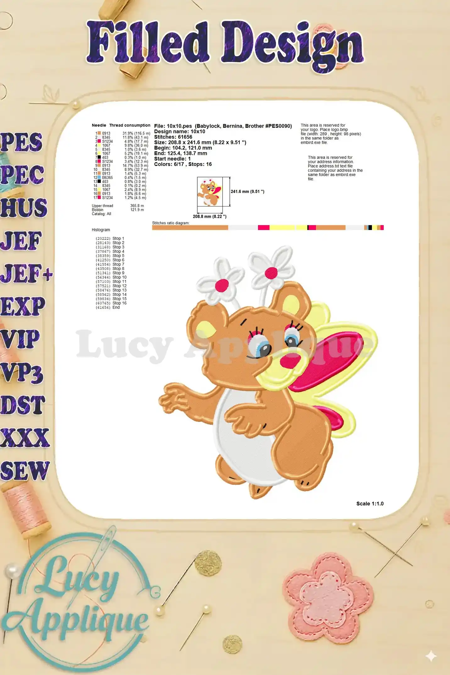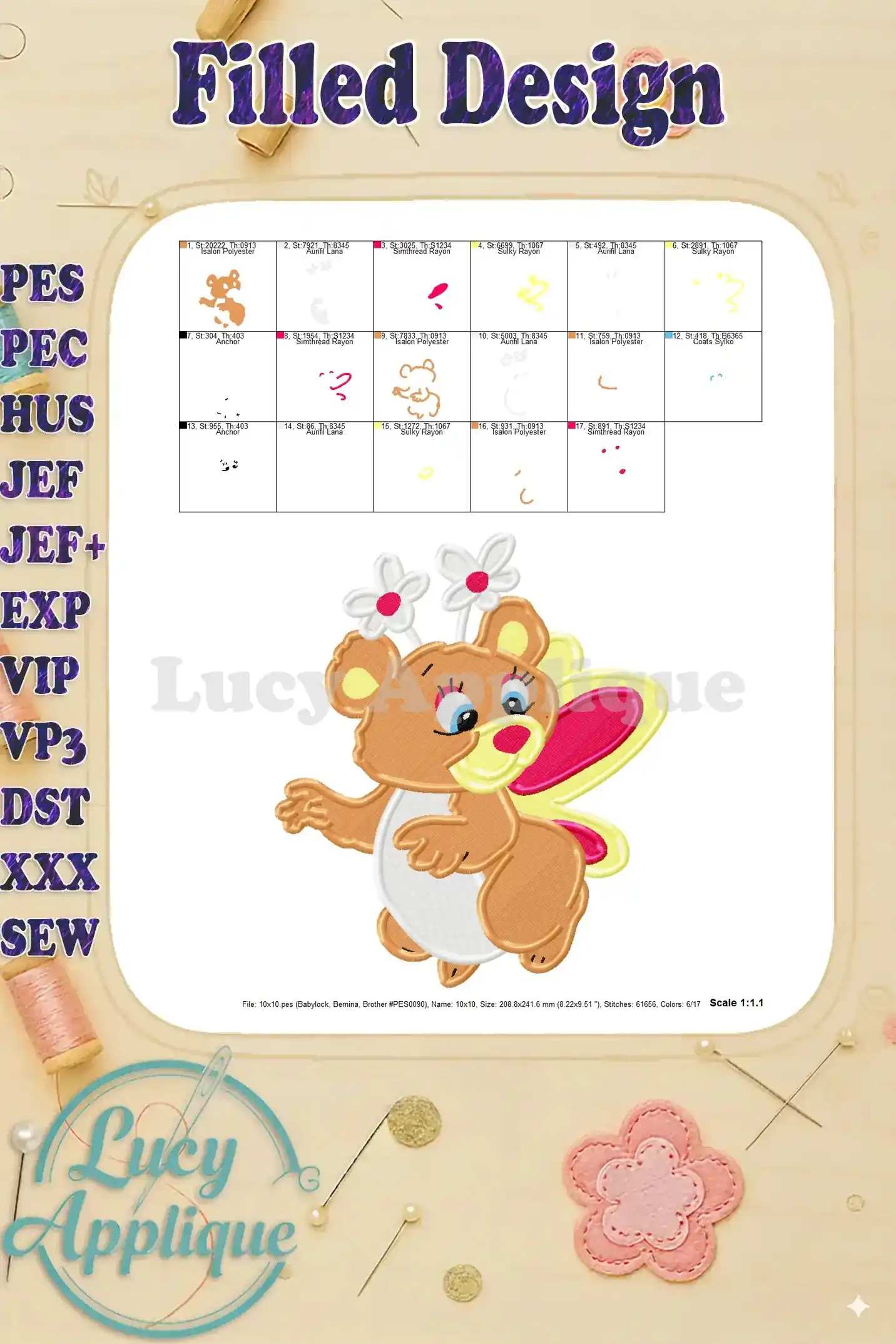 Butterbear The Wuzzles Fill Embroidery Design 01 – Instant Download