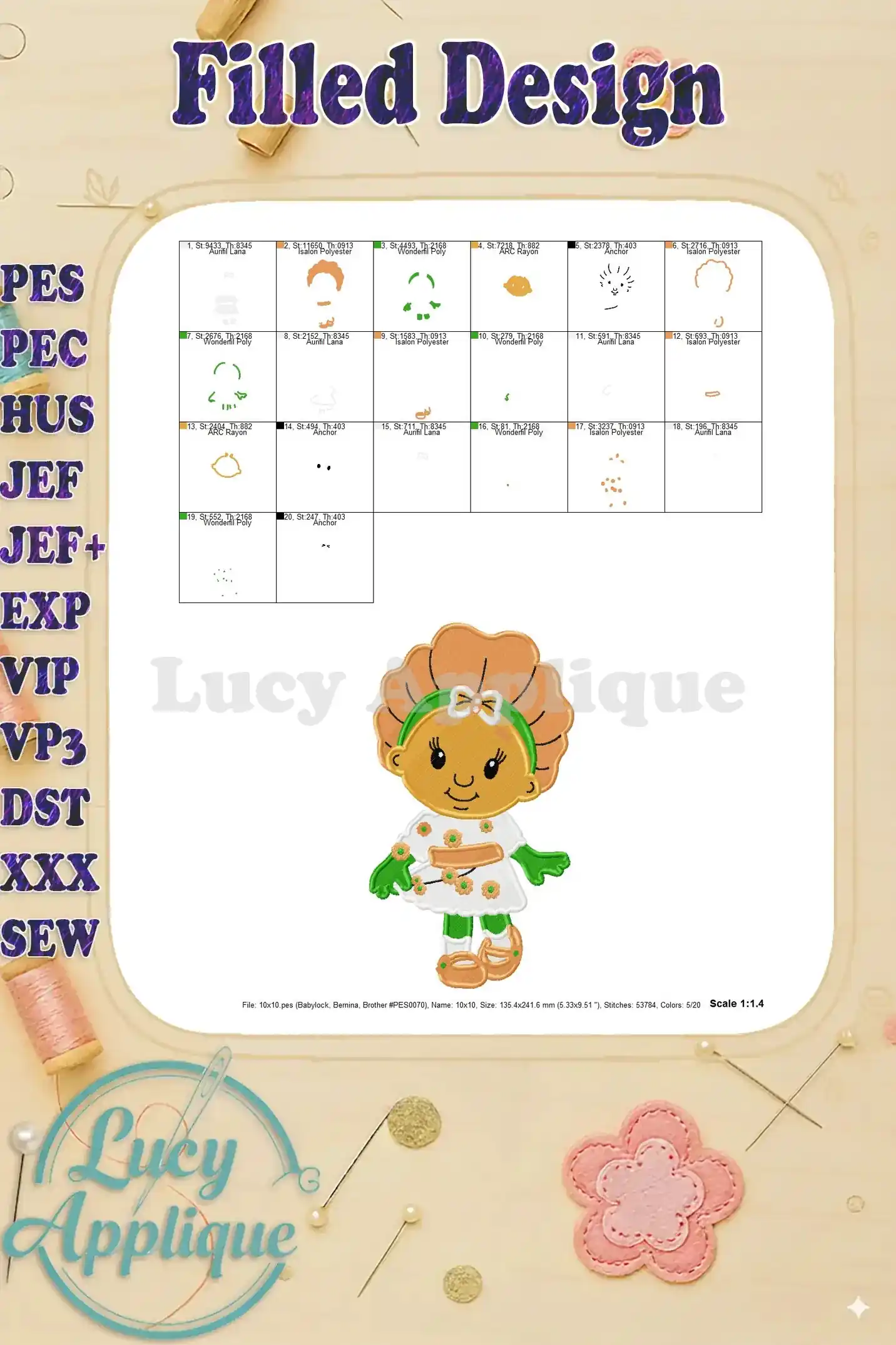 Buttercup Fifi and the Flowertots Fill Embroidery Design 01 – Instant Download