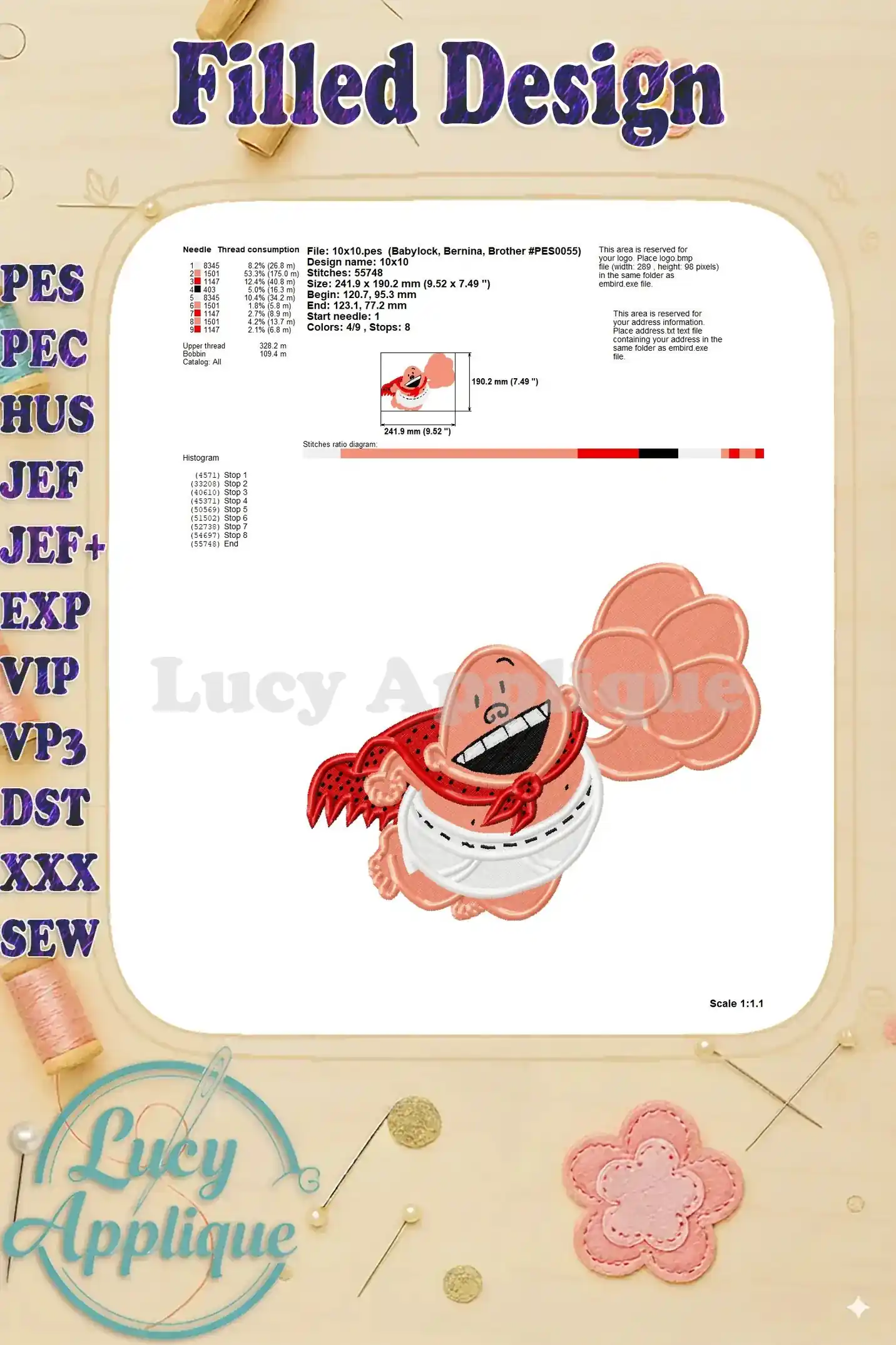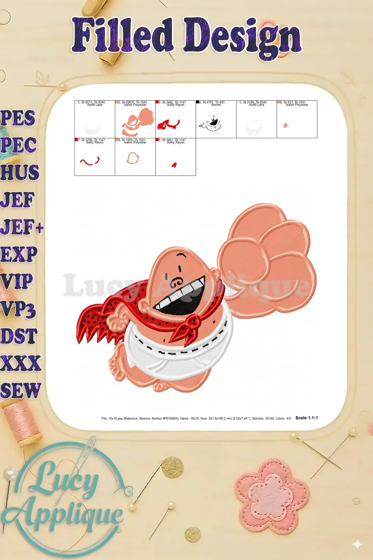 Captain Underpants Fill Machine 03 Embroidery Design – Instant Download