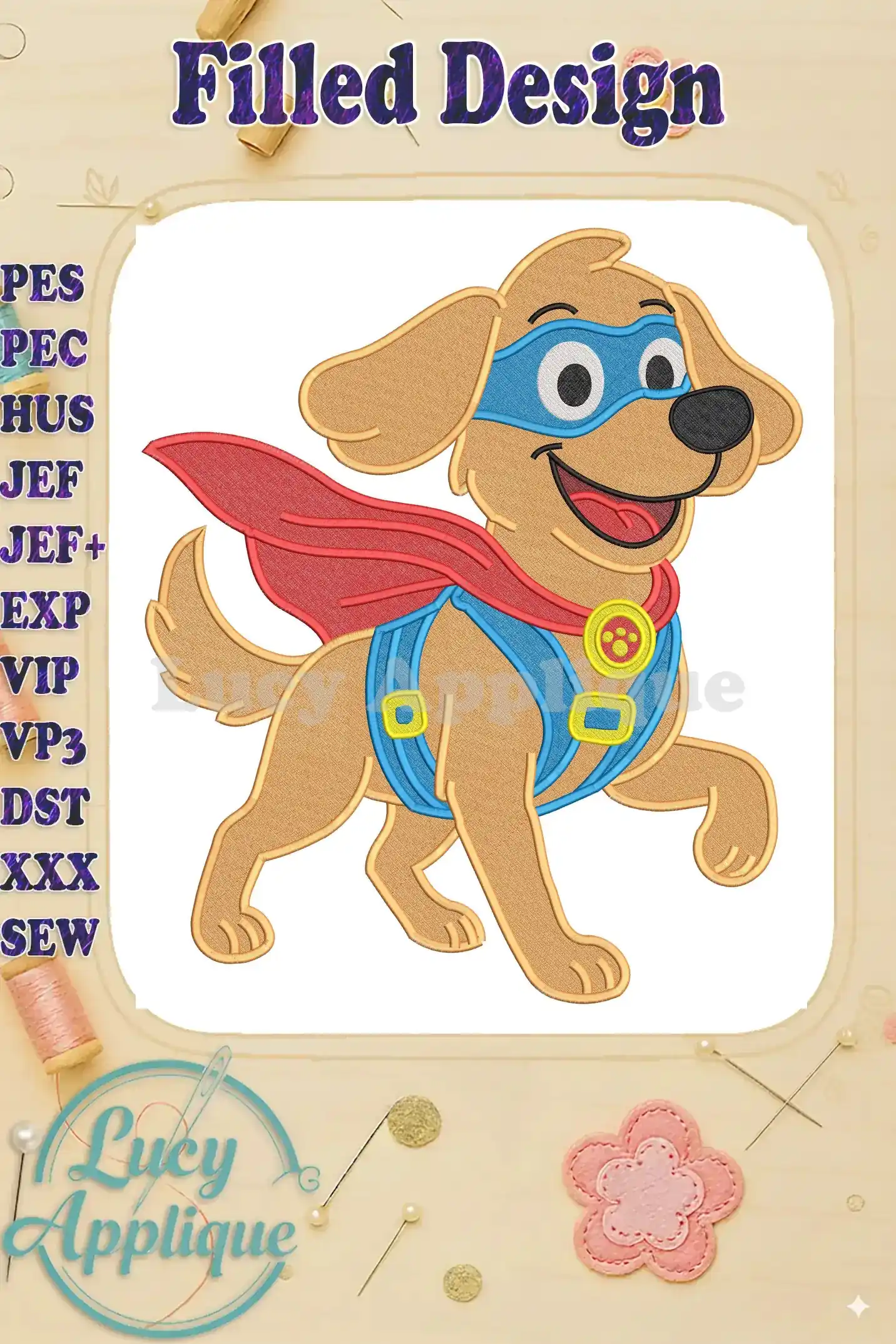 Charlie the Wonderdog Superhero Fill Embroidery Designs with Red Cape