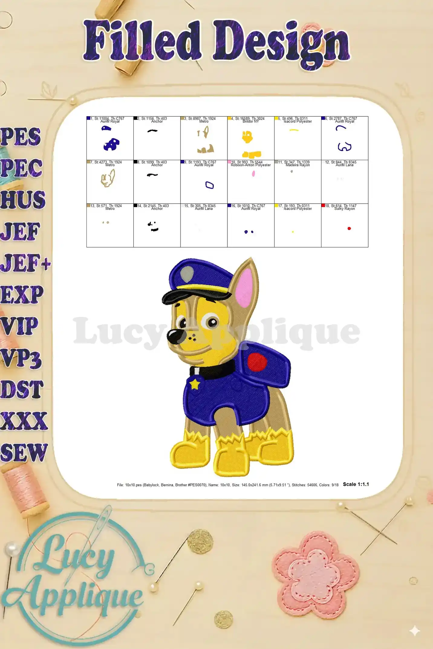 Chase Paw Patrol Fill Machine Embroidery Design – Instant Download