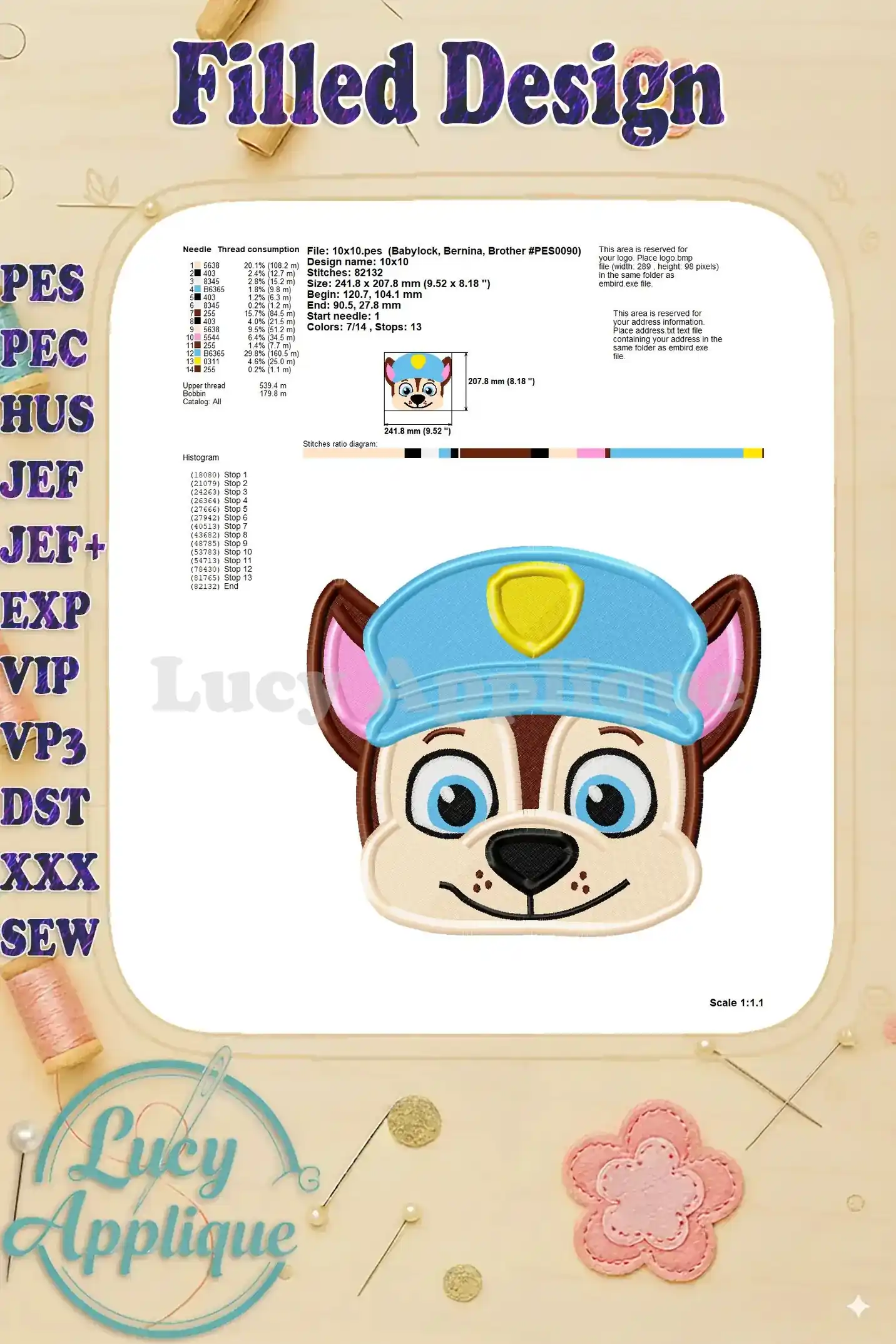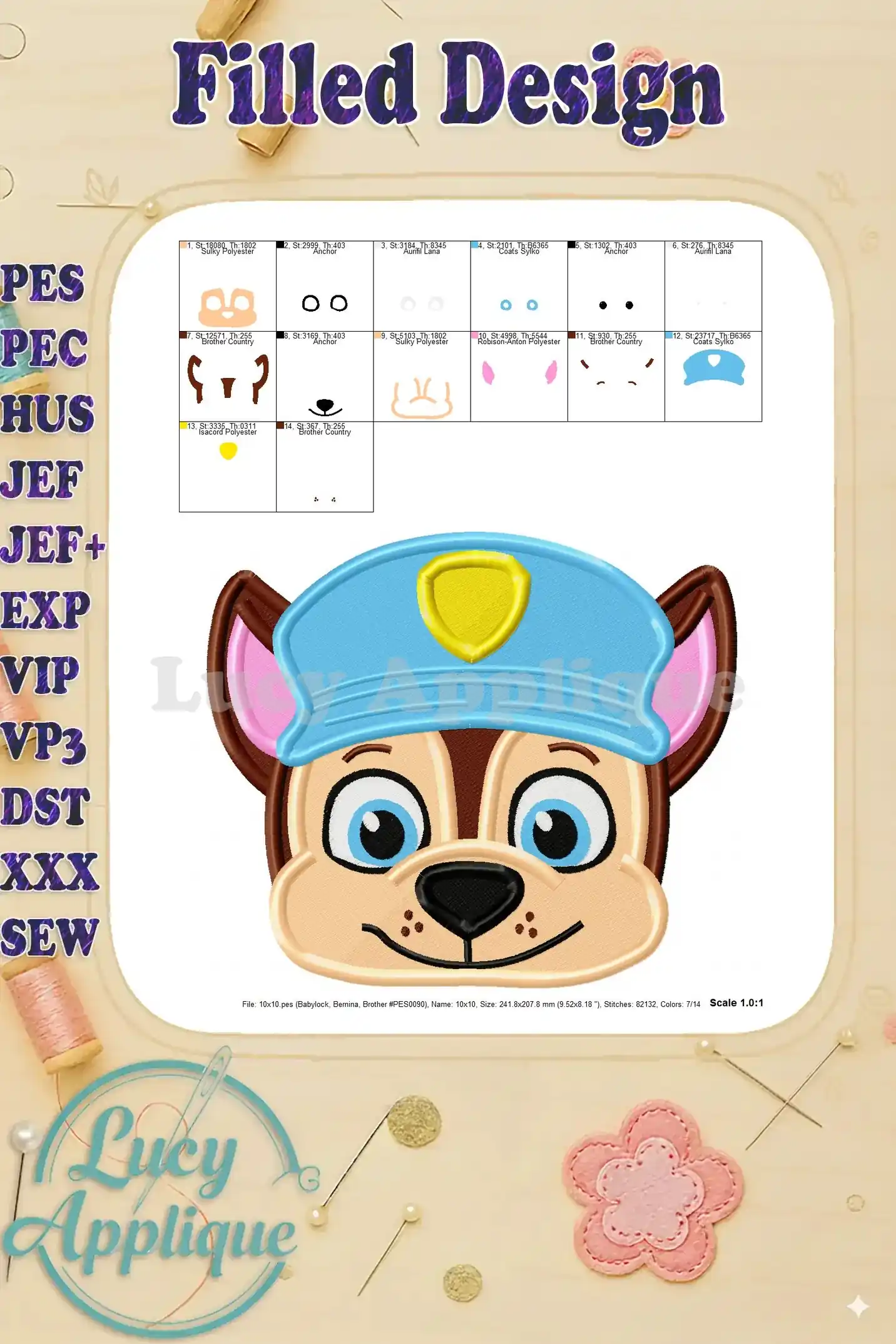 Chase Paw Patrol Head Fill Machine 01 Embroidery Design – Instant Download
