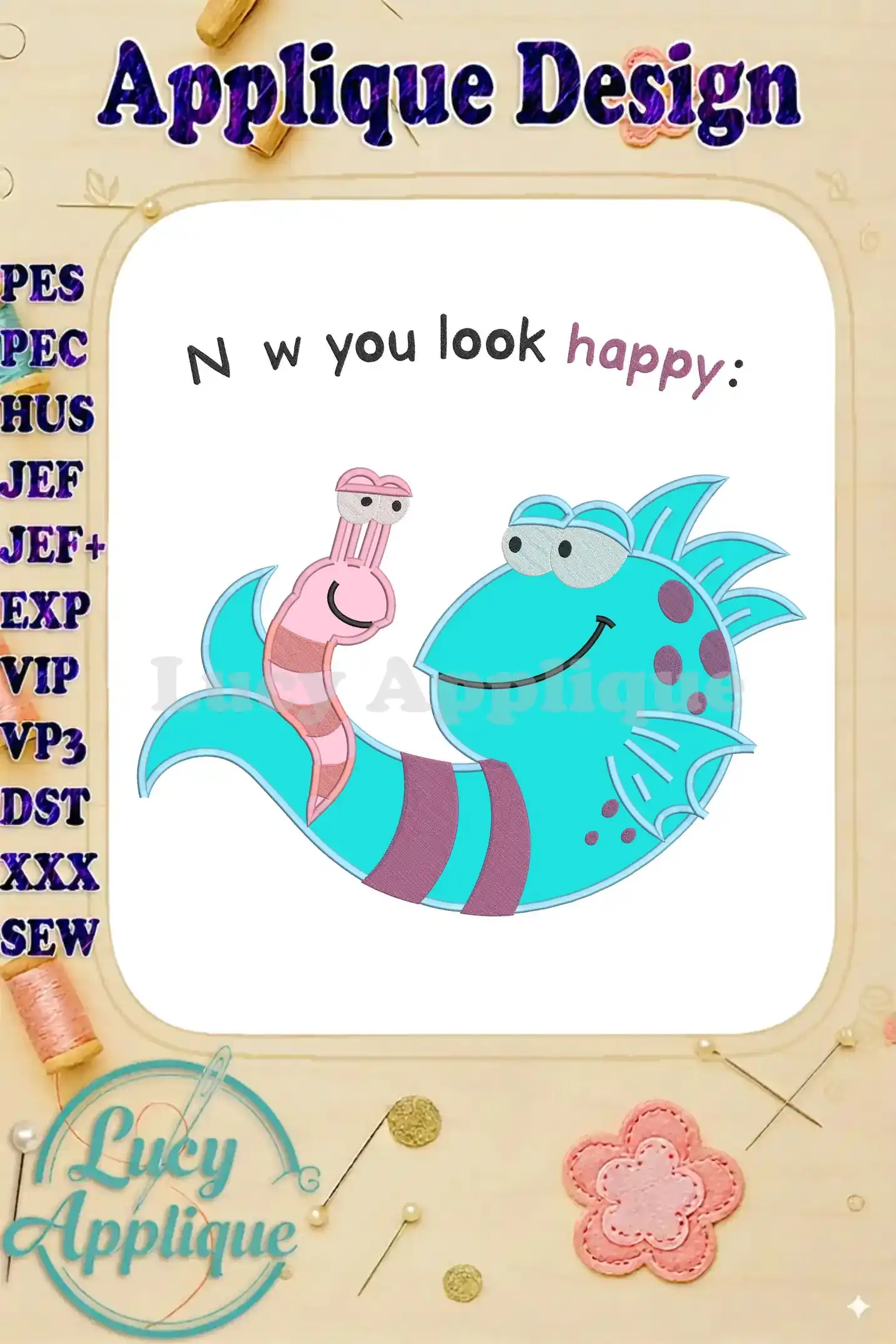 Cheerful Pout-Pout Fish and Pink Worm Applique Embroidery Designs