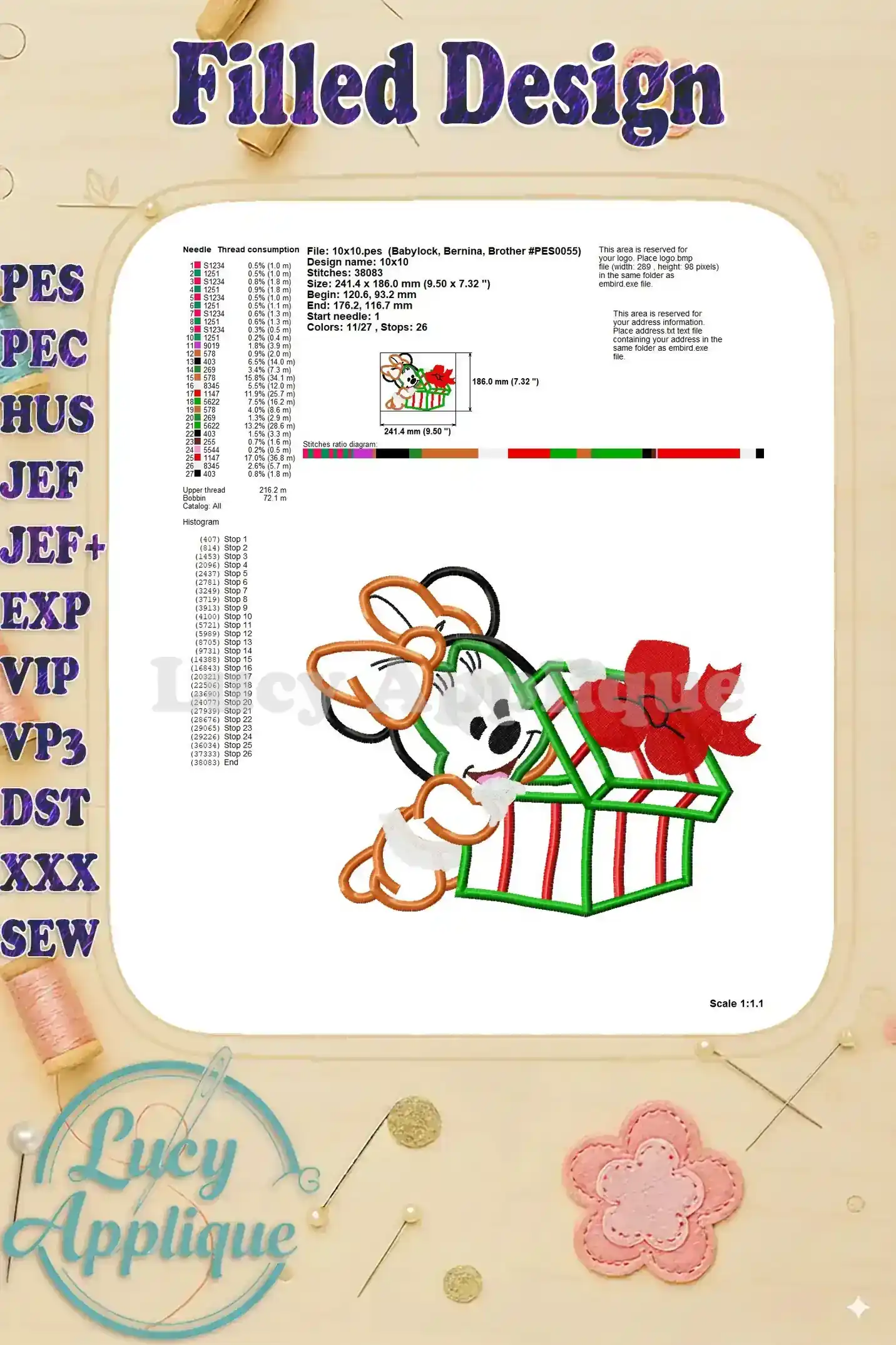 Christmas Minnie Mouse Applique Design 01 – Instant Download