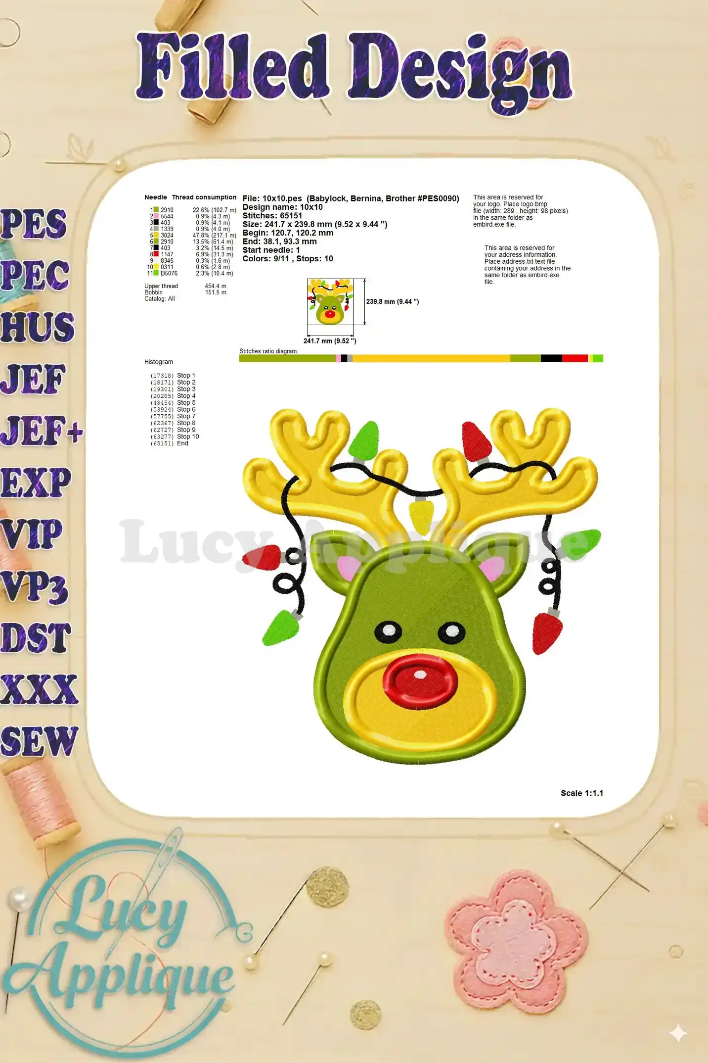Christmas Reindeer Fill Machine Embroidery Design – Instant Download