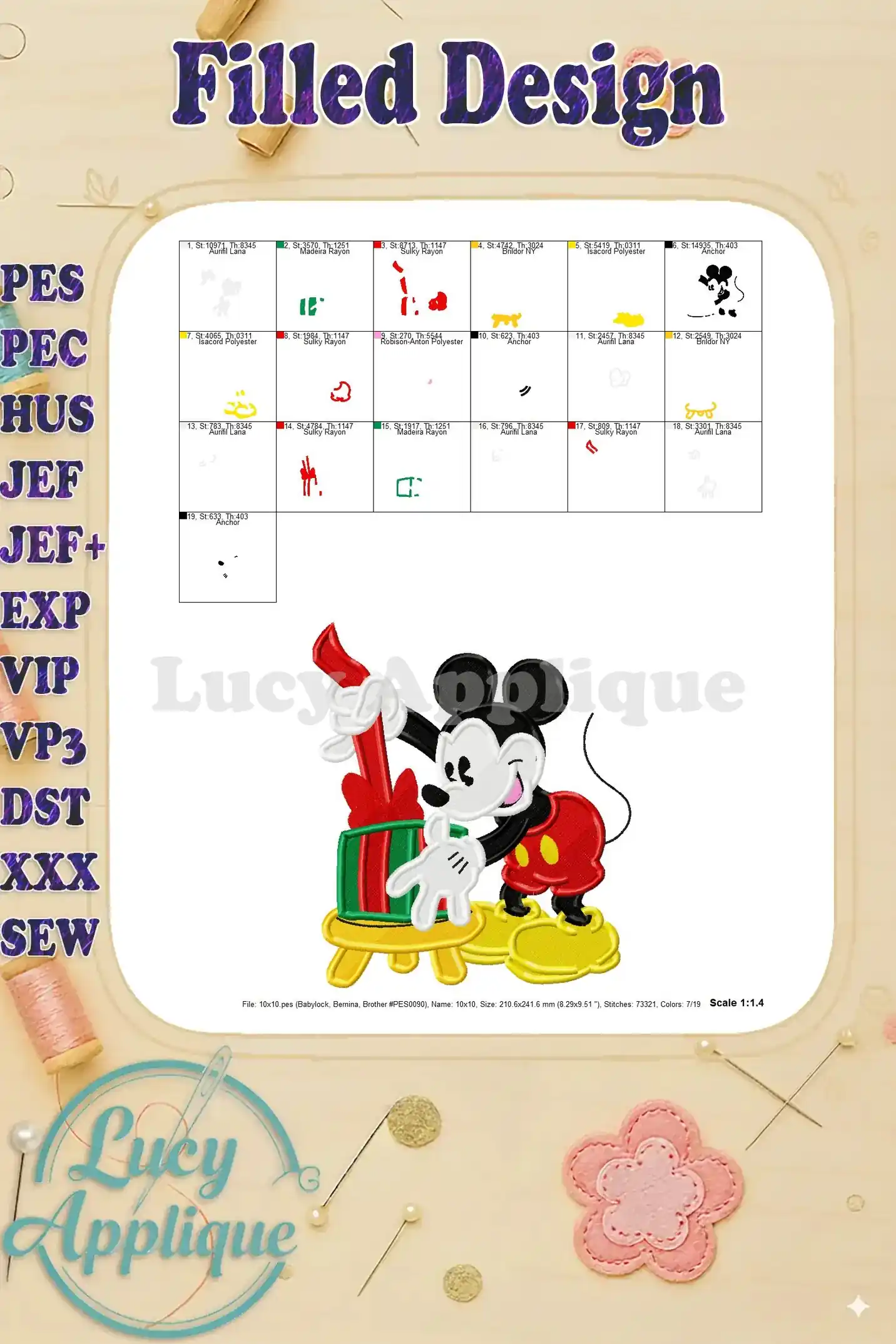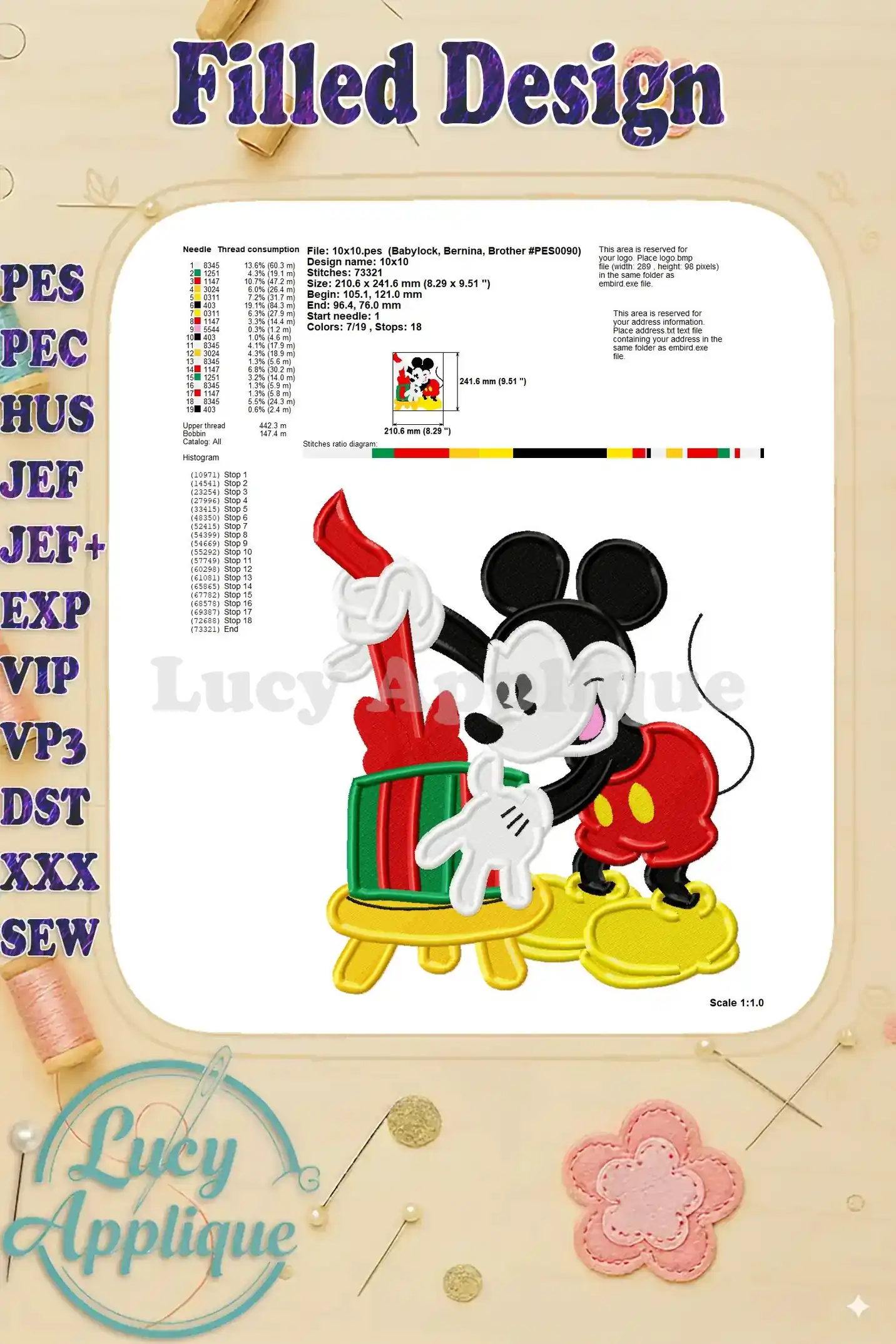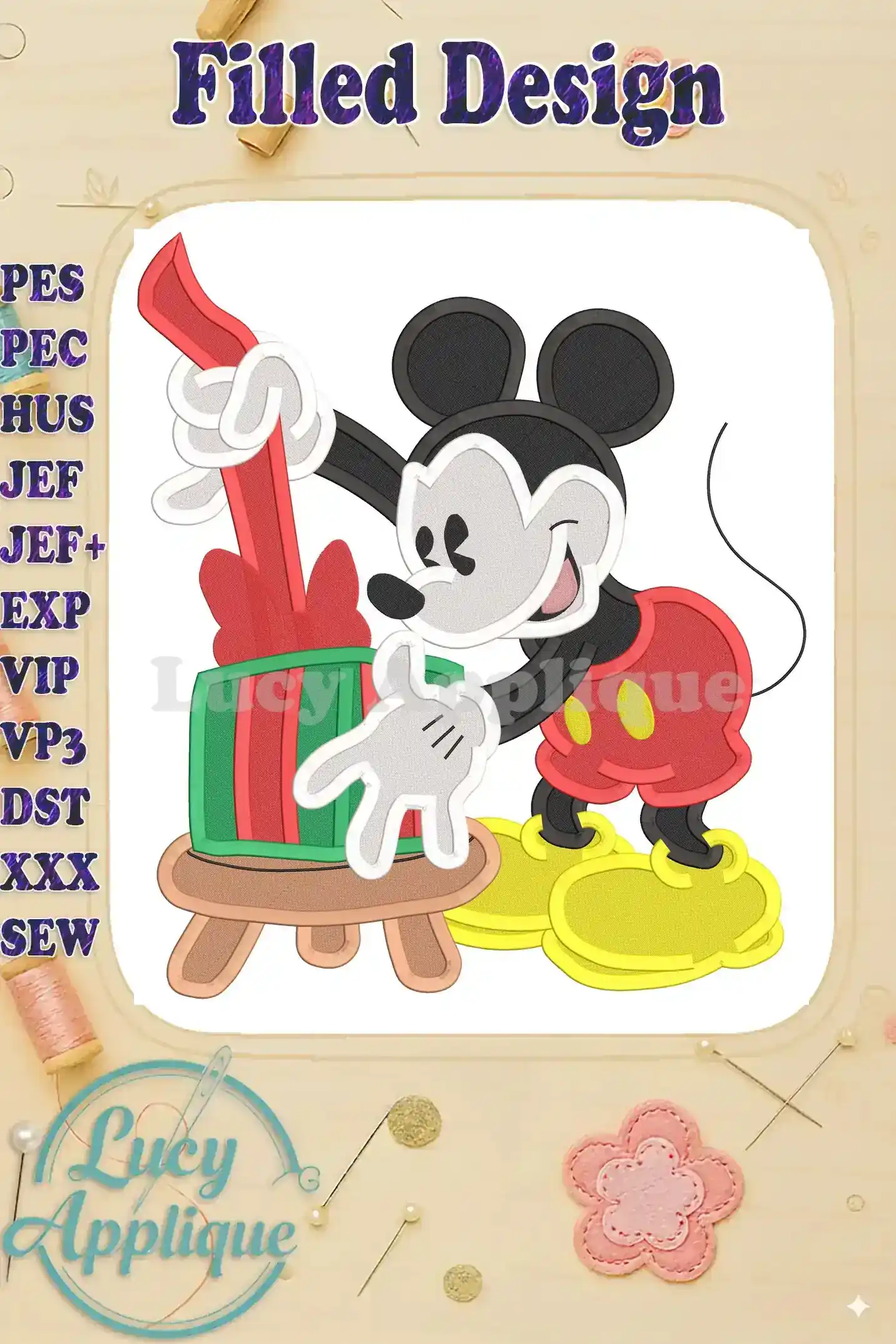 Classic Mickey Mouse Gift Fill Embroidery Design – Instant Download