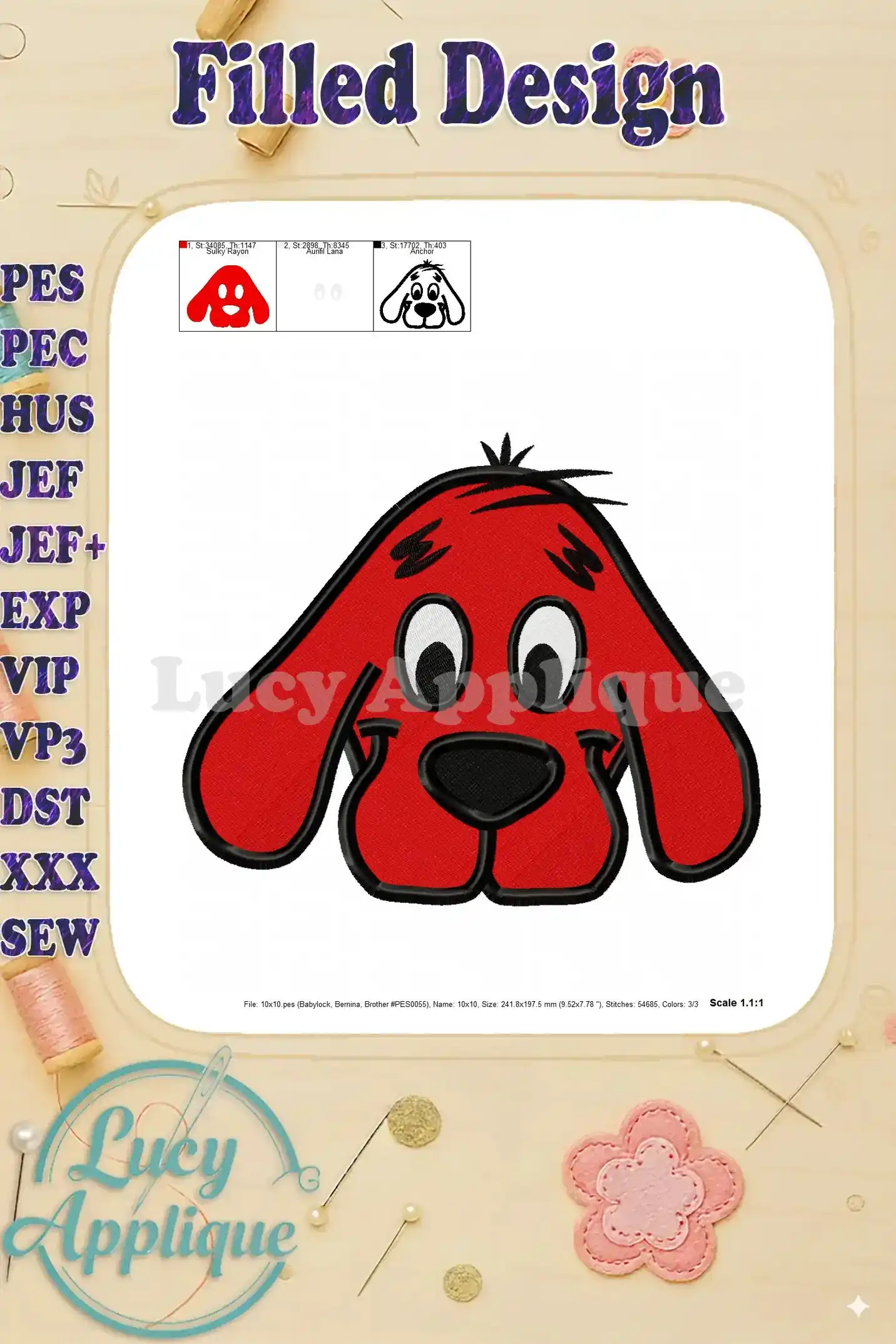 Clifford the Big Red Dog Fill Machine 02 Embroidery Design – Instant Download