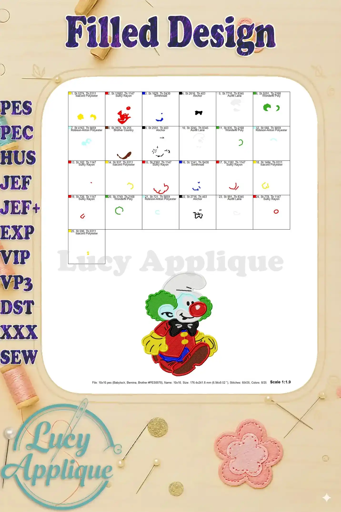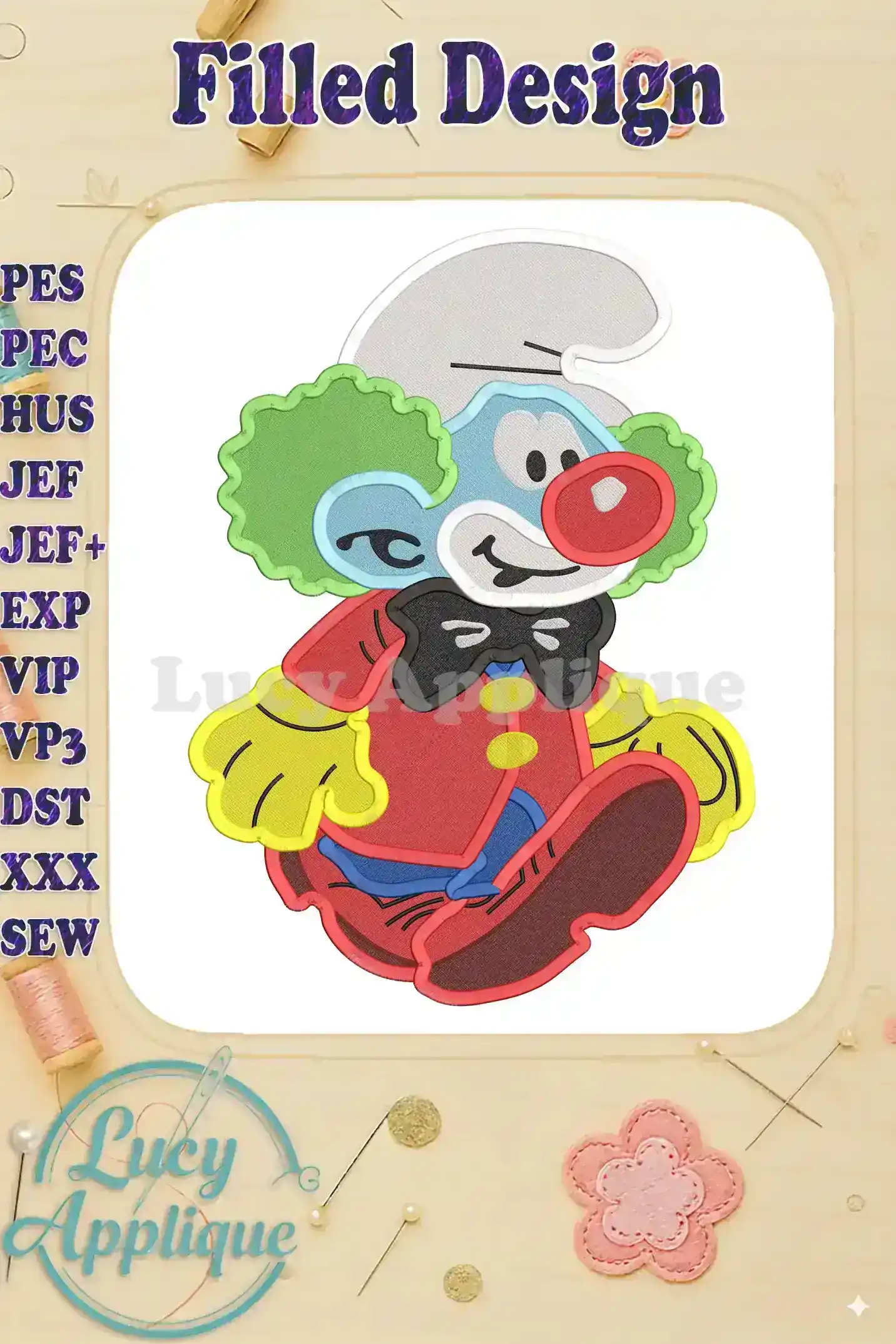 Clown Smurf Fill Embroidery Design 01 – Instant Download