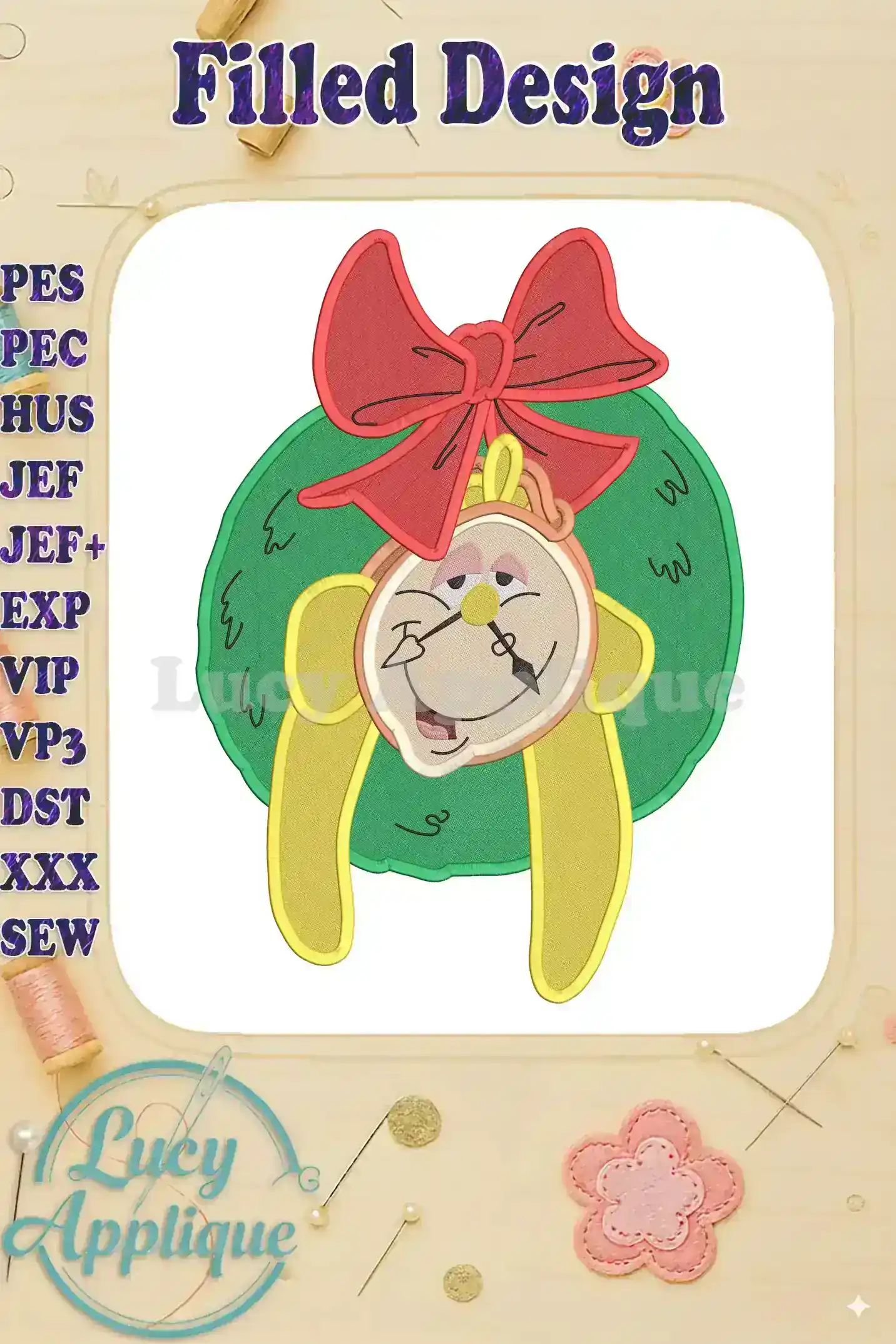 Cogsworth Beauty and the Beast Fill Embroidery Design – Instant Download