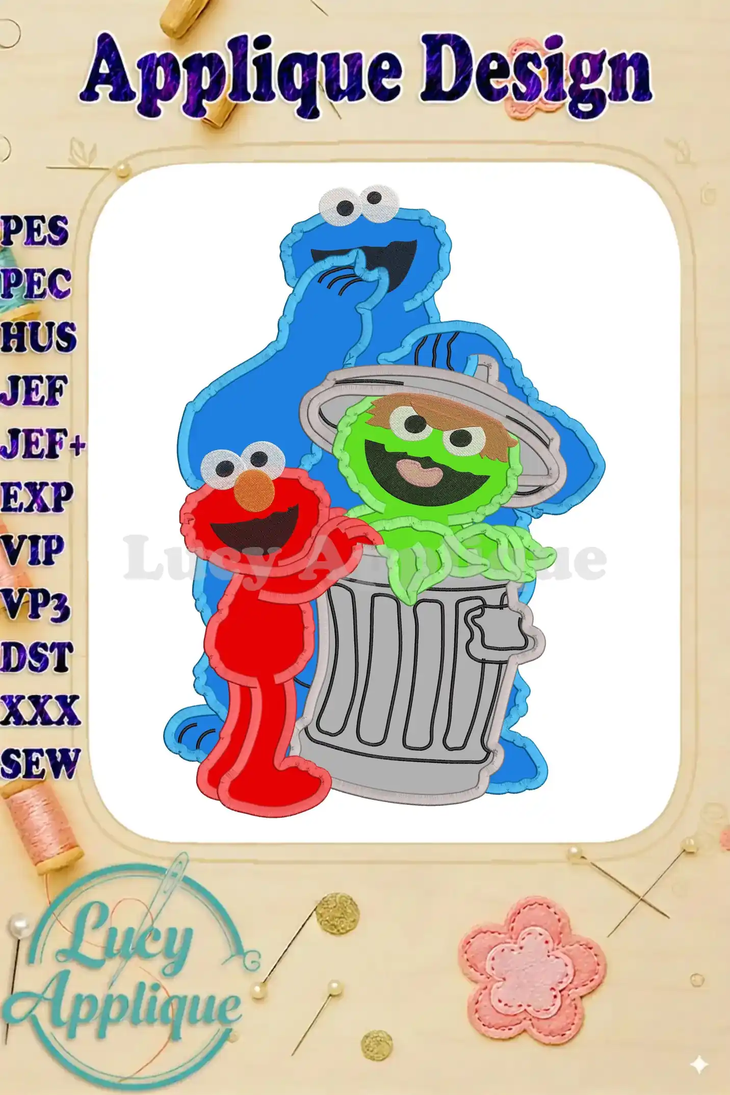 Cookie Monster and Elmo Sesame Street Applique Design – Instant Download