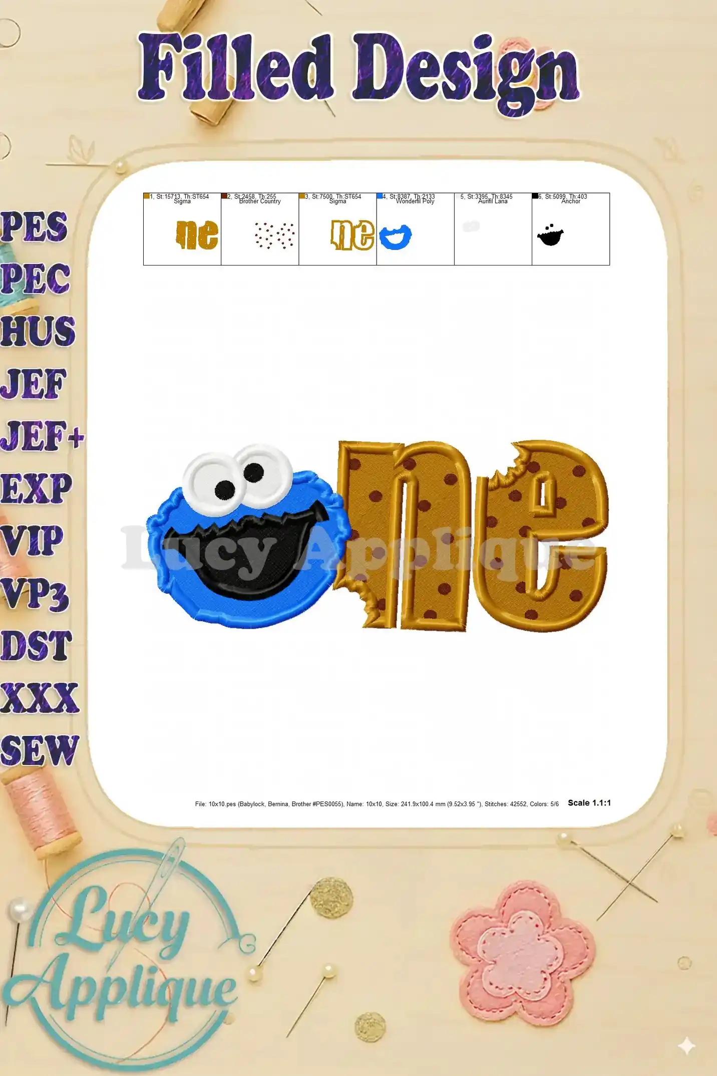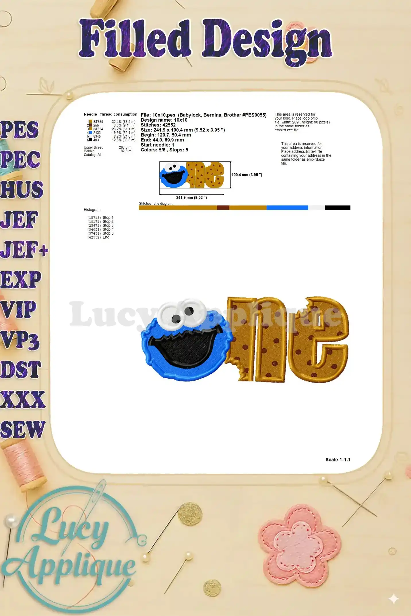 Cookie Monster One Birthday Fill Machine Embroidery Design – Instant Download