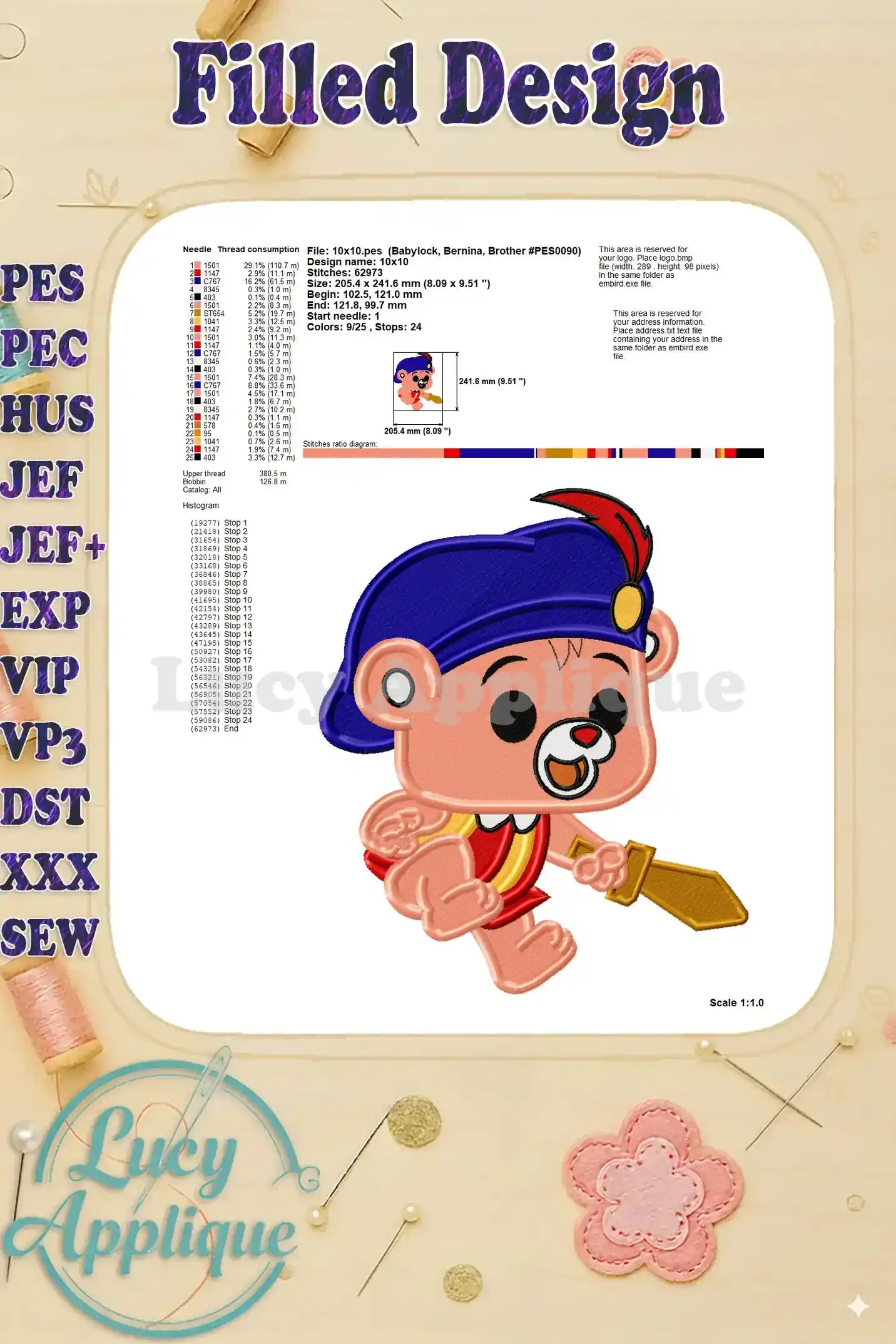 Cubbi Gummi Sword Adventures of the Gummi Bears Filled Embroidery Design – Instant Download