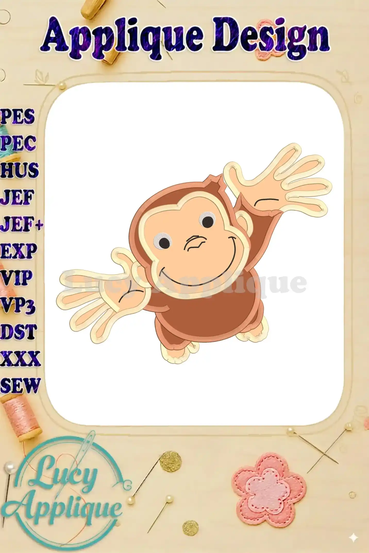 Curious George Applique Design 07 – Instant Download