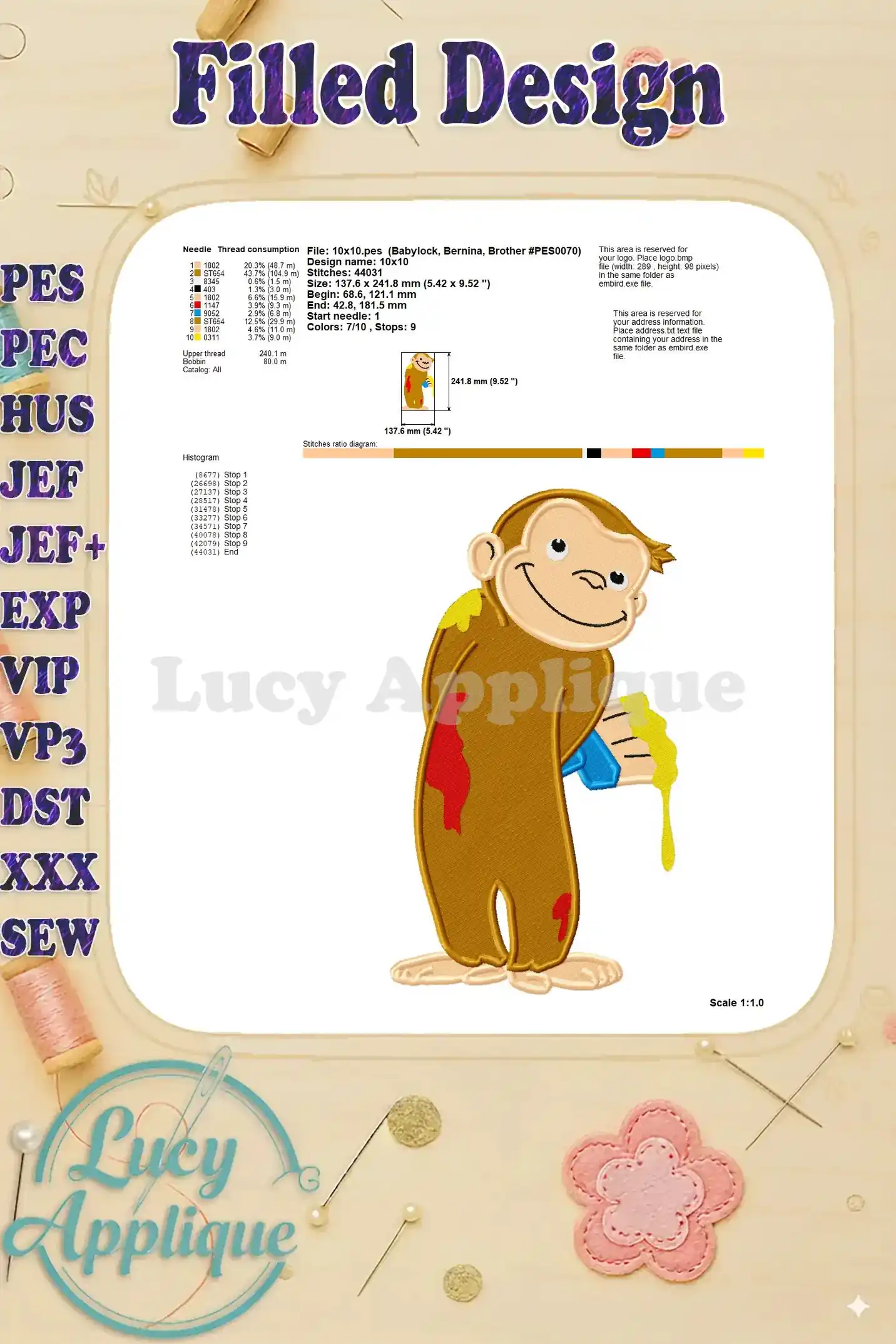 Curious George Fill Embroidery Design 04 – Instant Download