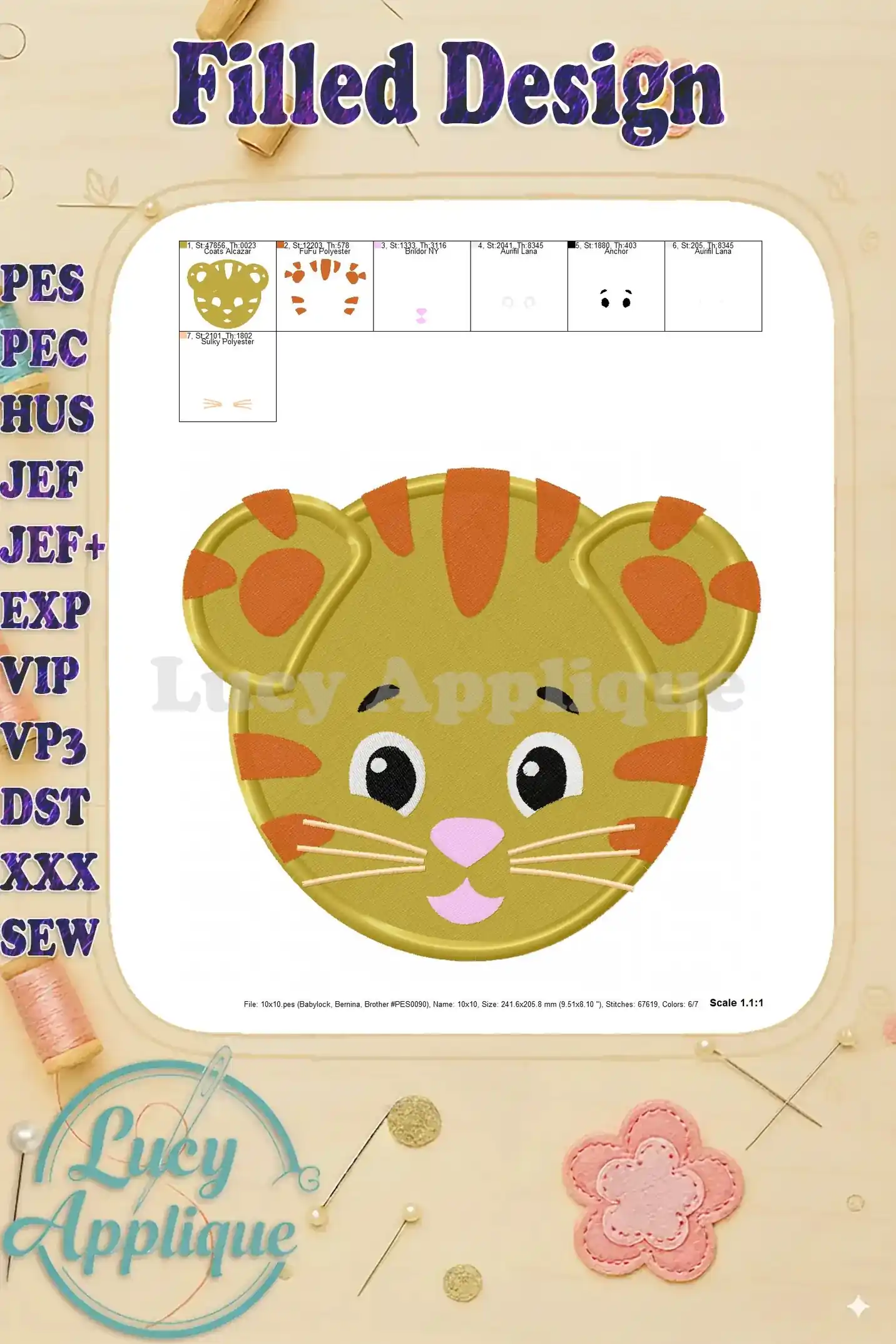Daniel Tiger Face Fill Machine 01 Embroidery Design – Instant Download