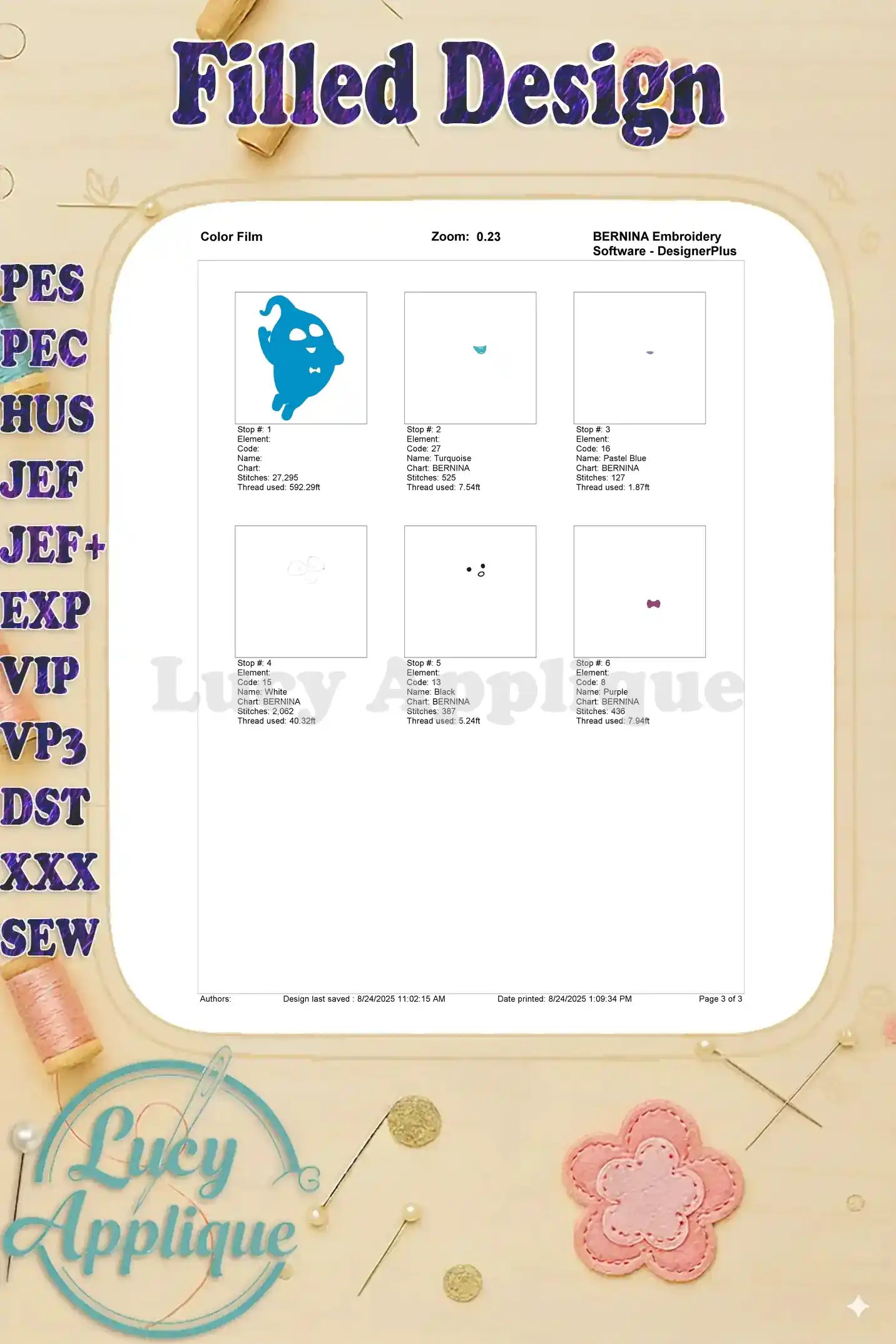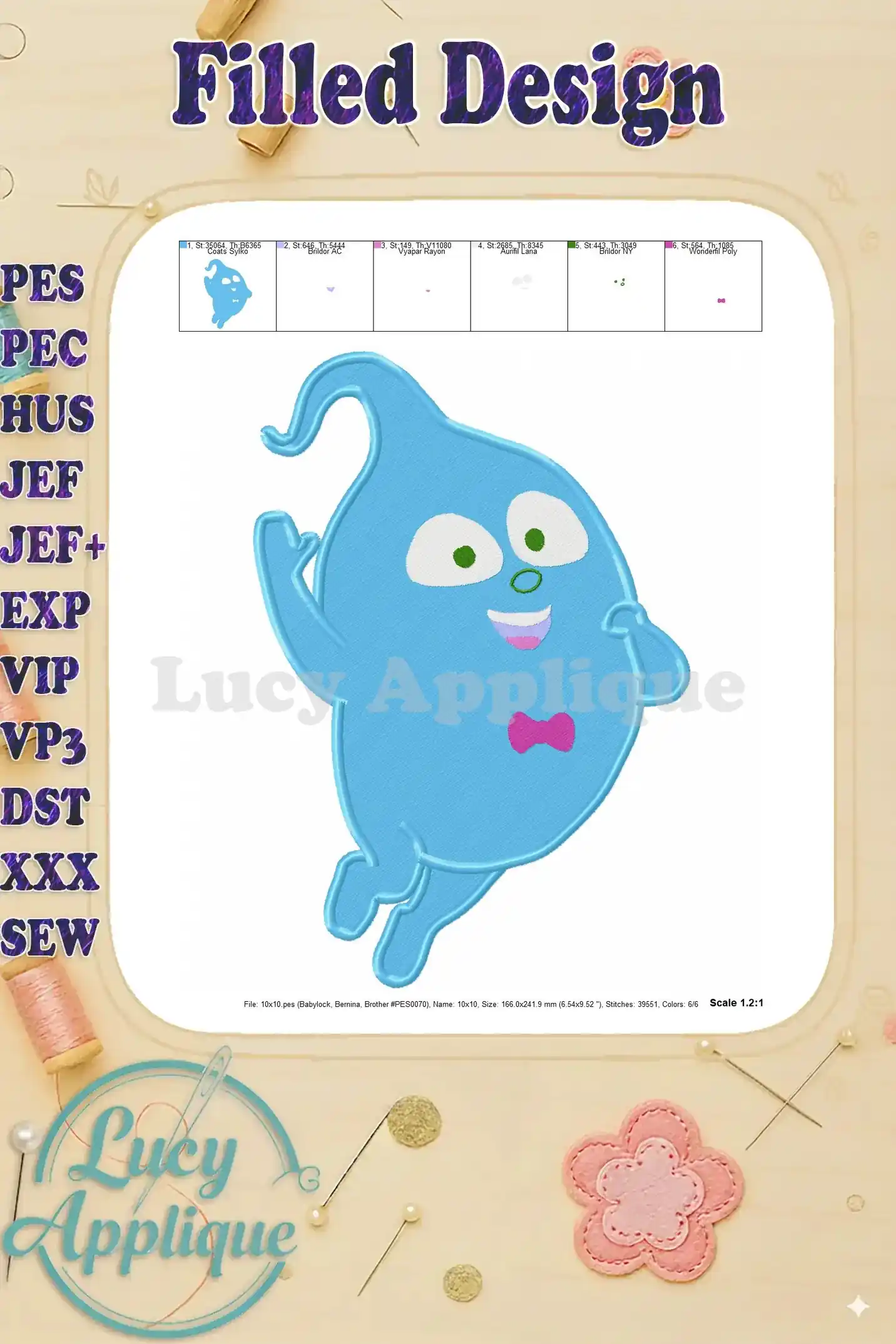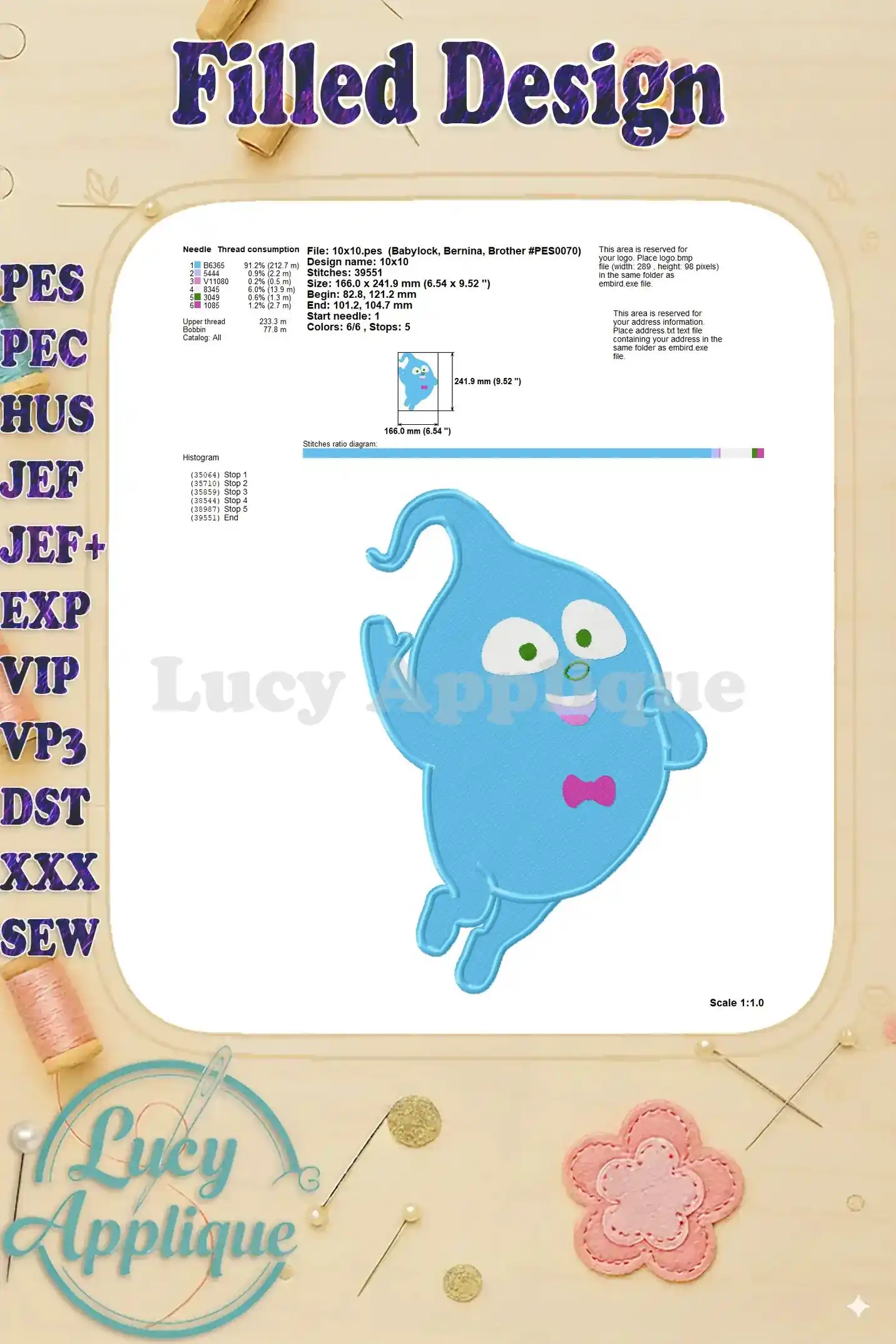 Adorable Demi Vampirina embroidery design! Filled stitch, perfect for kids’ projects. Instantly download and personalize your projects with this charming character.