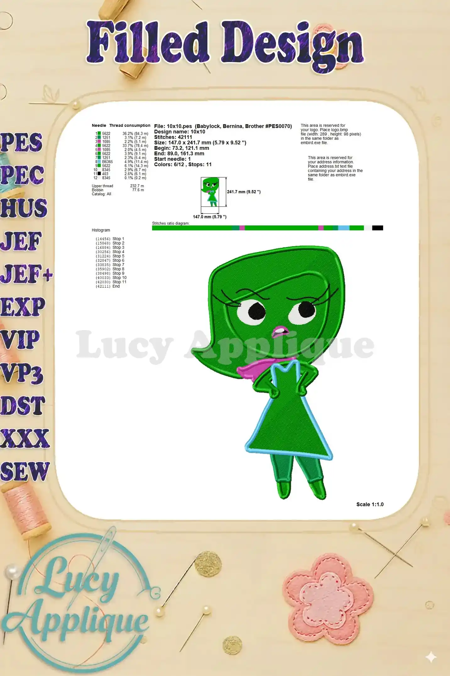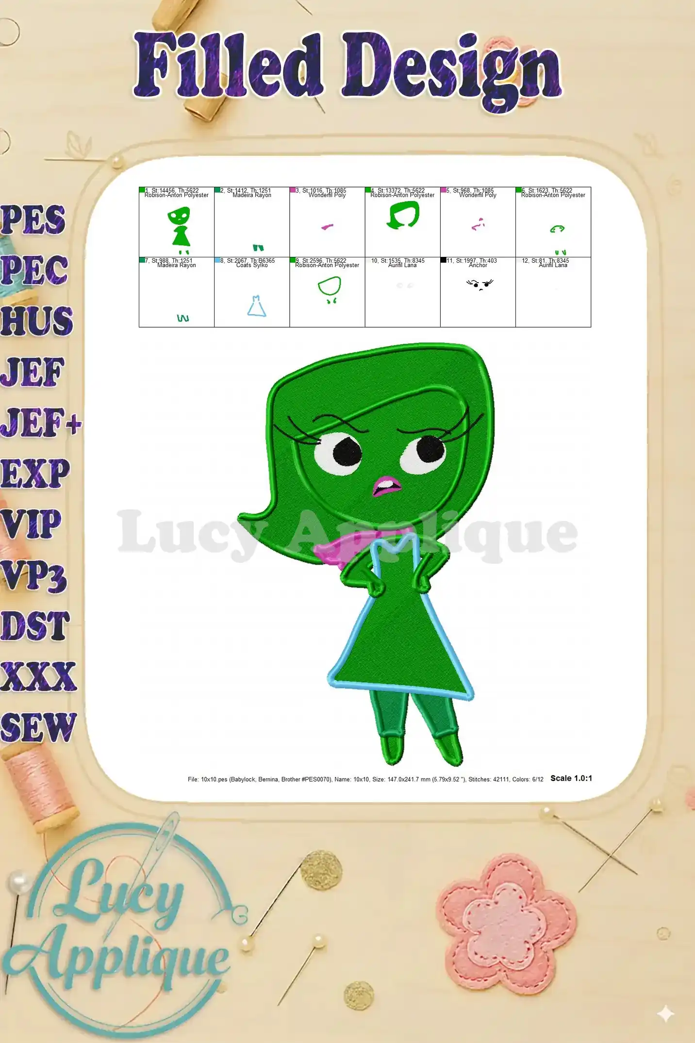 Disgust Inside Out Fill Embroidery Design 01 – Instant Download